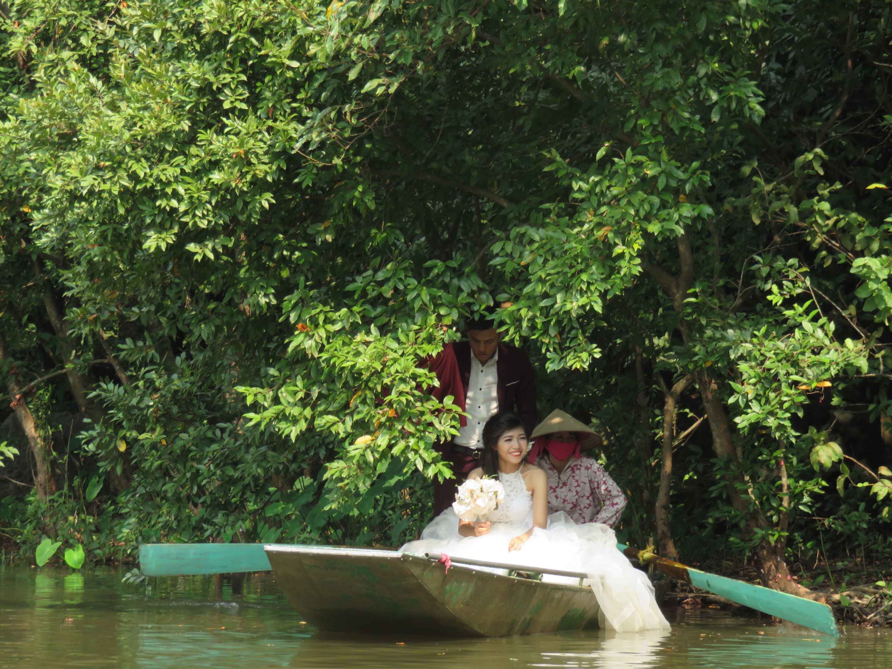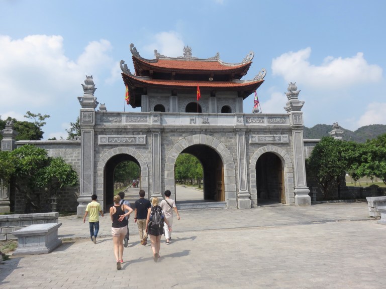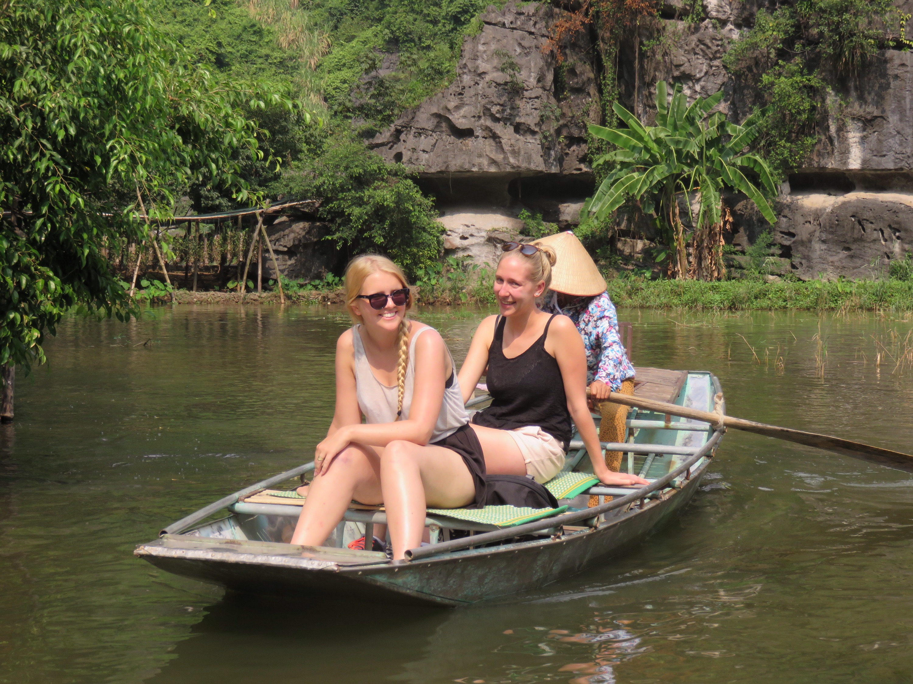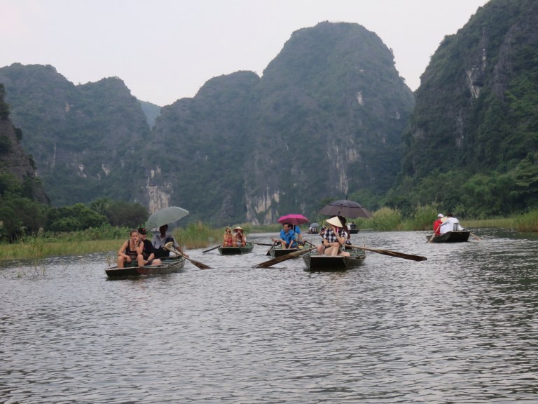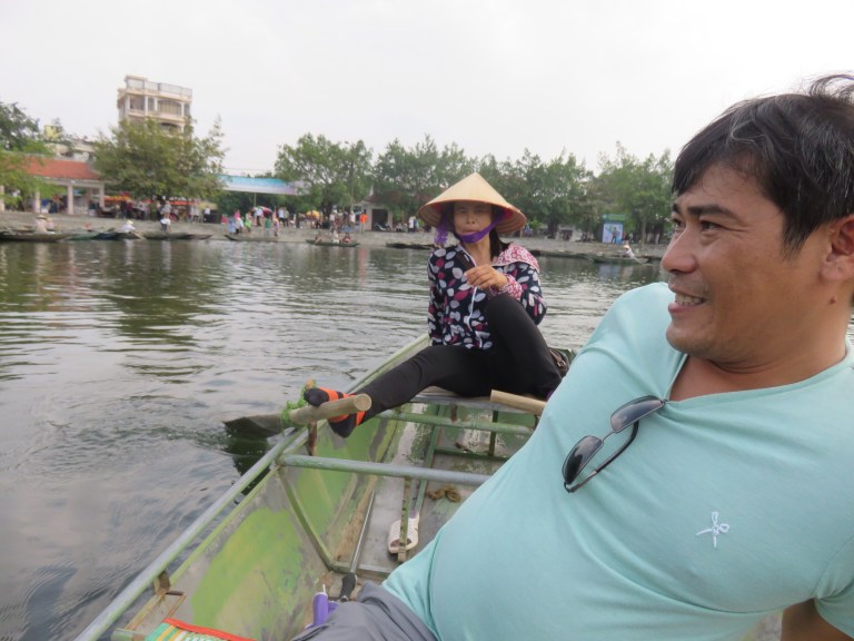 Leaving there were head to Tam Coc which is beautiful and is called Halong on land. We have a Buffett lunch which is traditional Vietnamese and pretty tasty apart from goats which wasn’t so keen on. After lunch pair up to go on a boat ride through the halong peaks and going though caves which is all breathtaking scenery. All boats are rowed using their feet which is pretty cool to see. The ride is about 30mins each way and there are a lot of boats doing the tour, even a wedding. Where we turn around to come back there are a lot of supermarket boats and I get guilt tripped into buying our rower a drink, which I definitely don’t mind as it looks hard work but hate being told or hassled to do itAfter the boat, we grab some bikes and cycle around the rice fields and local farm houses while passing women killing and gutting fish which is bit of a sight.