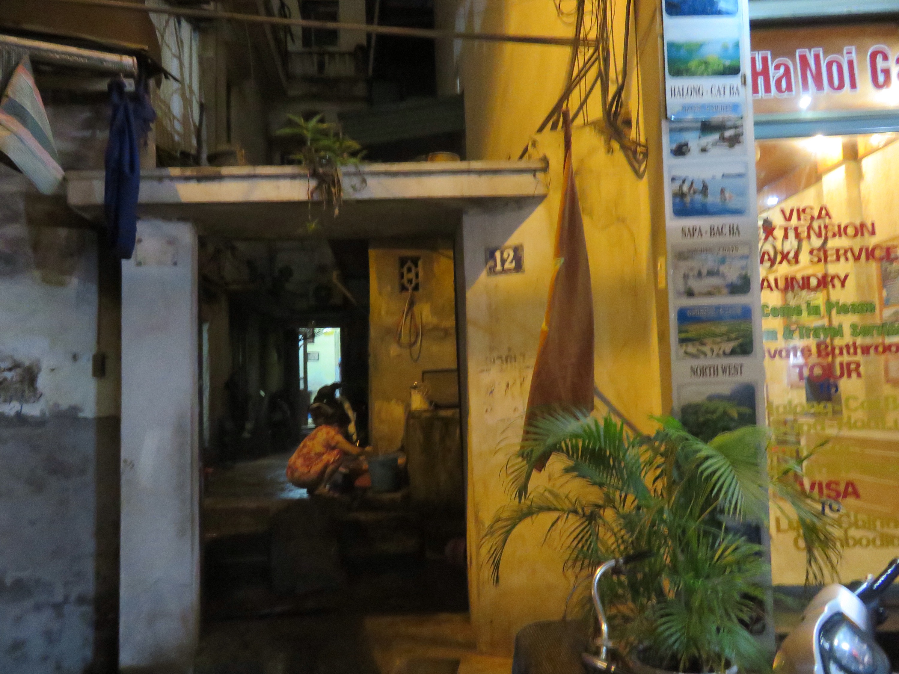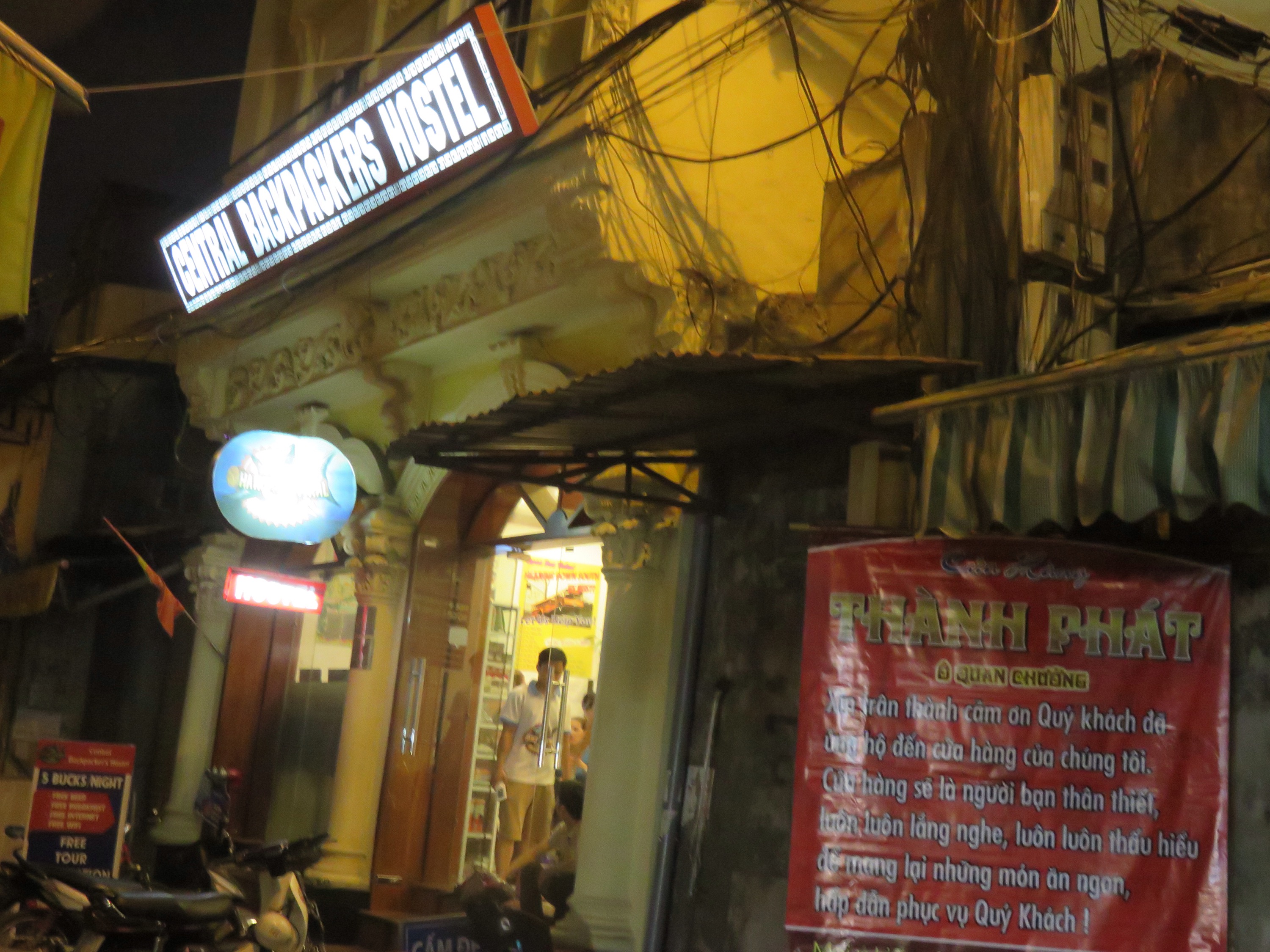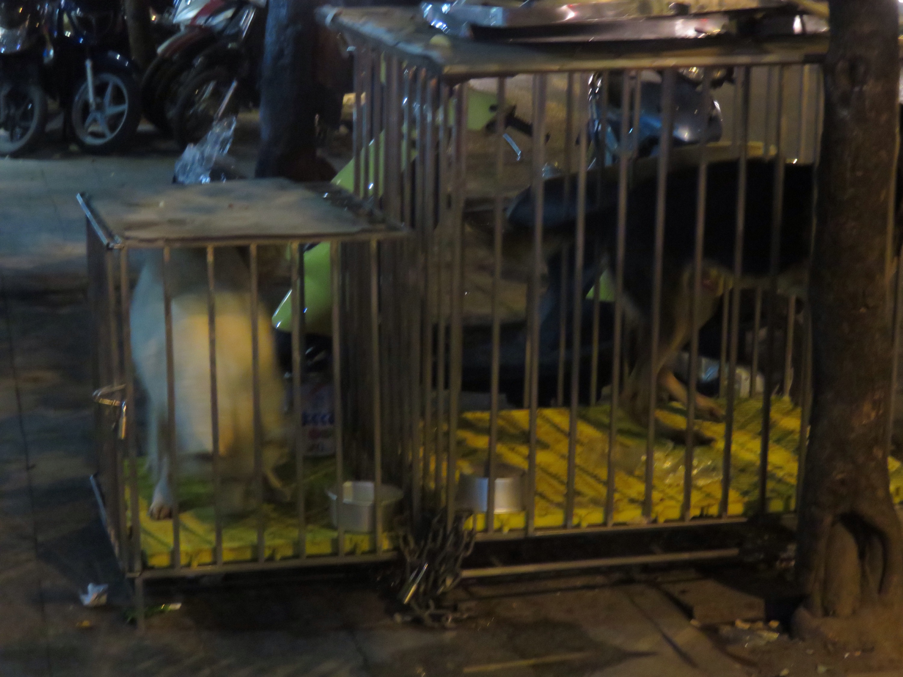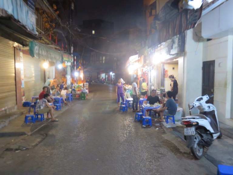 Arriving back about 6.30pm from Tam Coc, head up for the free beer and chat to some of the guys have started to get to know after being there 5 days! Generally keeping it quiet as up early to fly, stroll around Hanoi taking some last pics Of the Golden Arches and crazy scooter streets finding a nice bar to people watch while drinking my tiger beer. When it gets to 12pm stop for some local street food grabbing my staple noodles and Veg which is so tasty but takes awhile to eat as they gave me chopsticks which I can’t use! The central packer street is quiet with all the food stalls packed away but still out are dogs in cages which will be eventually killed for food as their speciality meat.