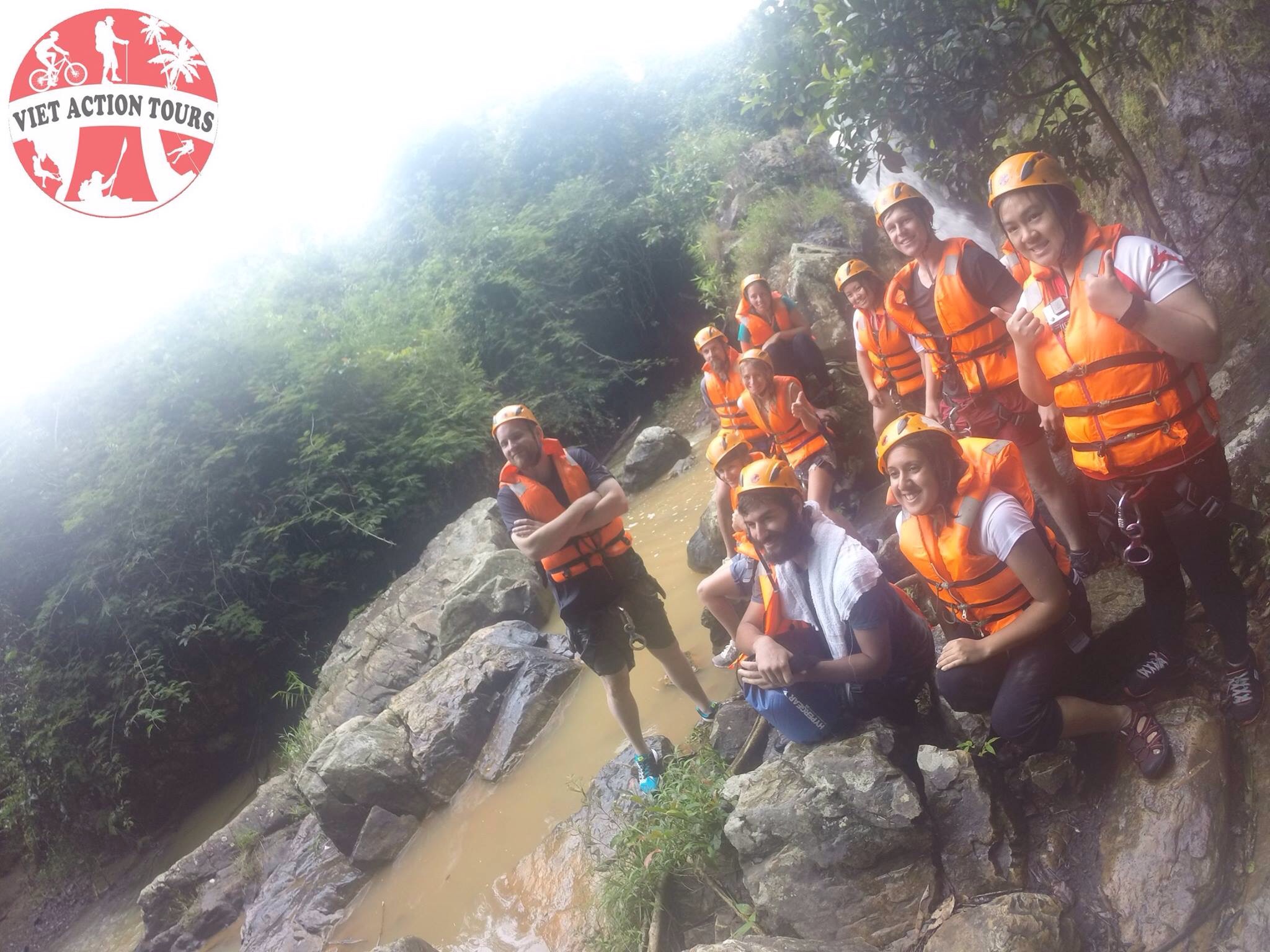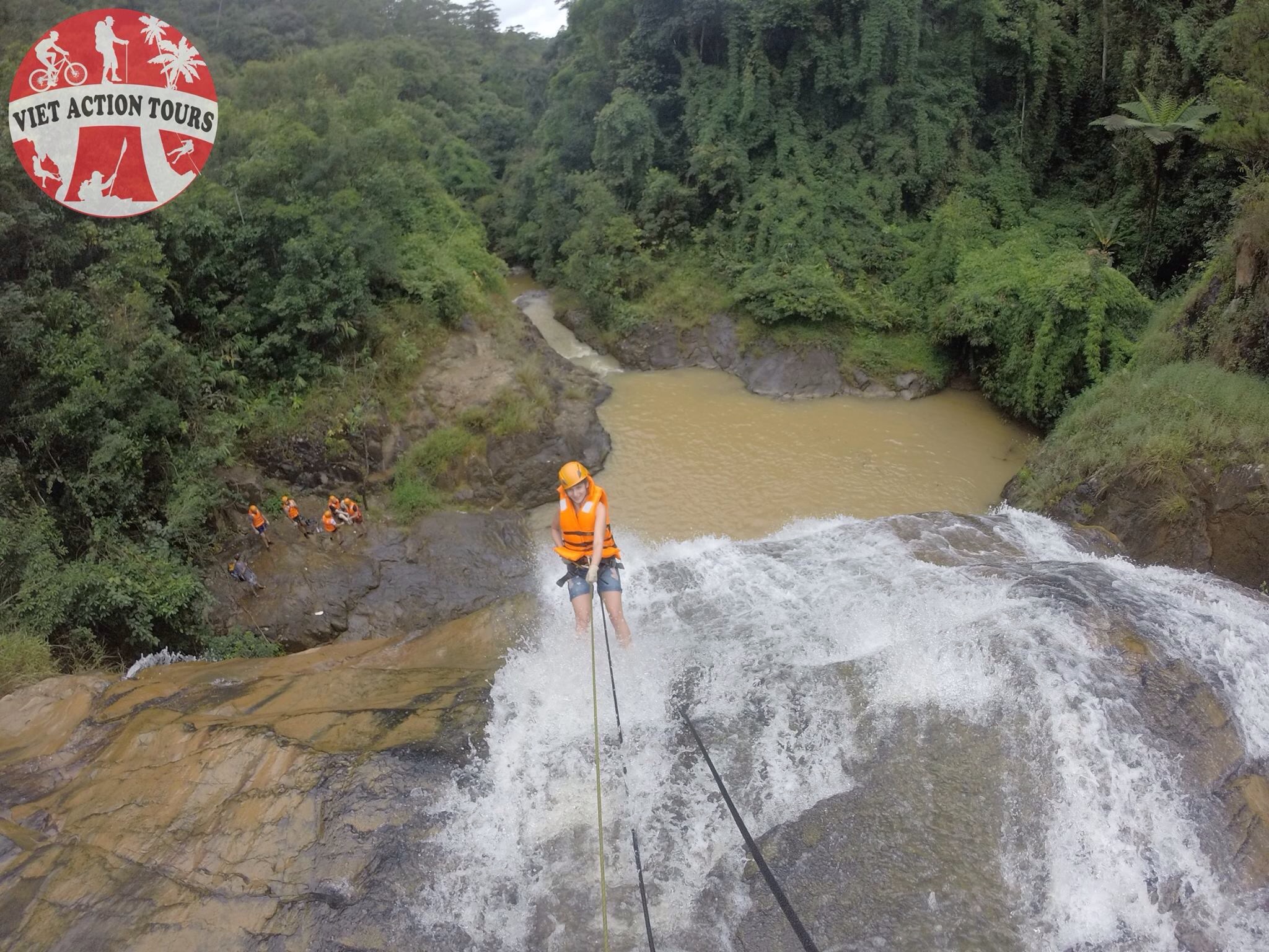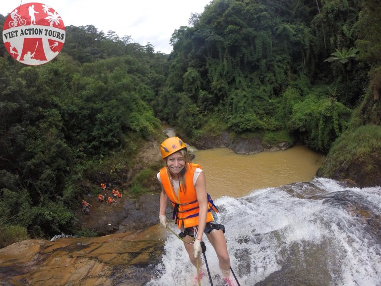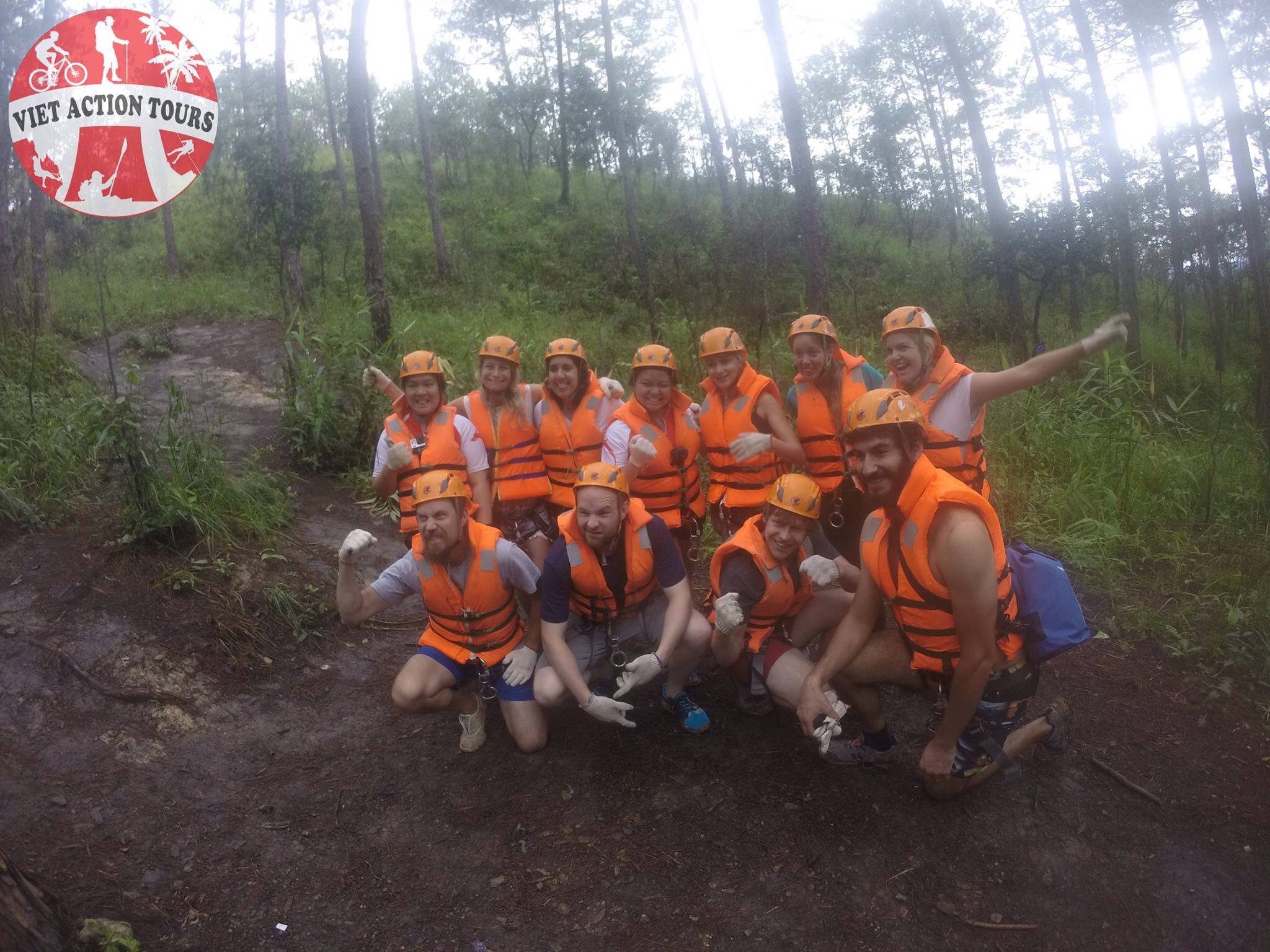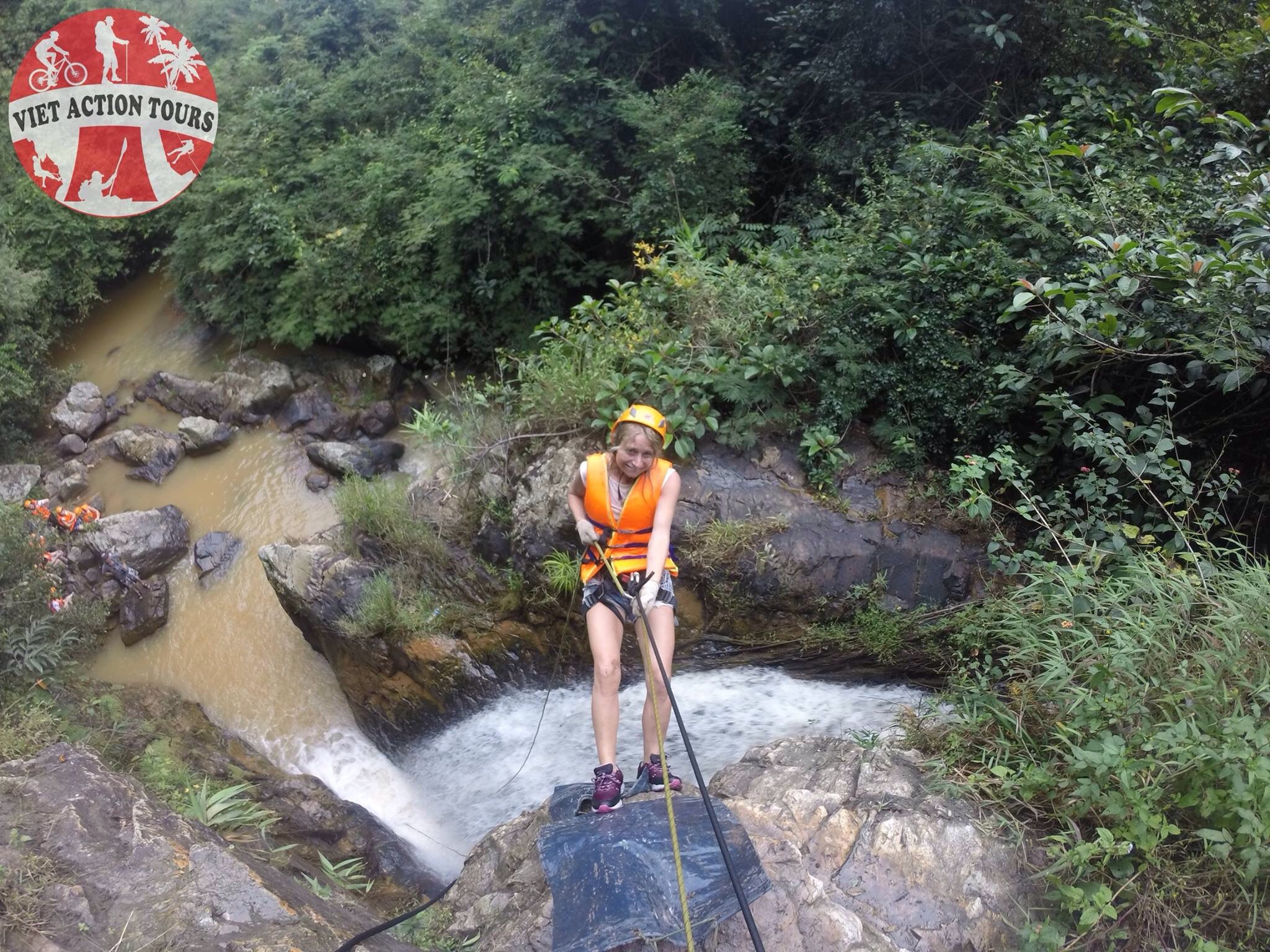 A great day out meeting really cool people and being brave at the DaLat waterfalls Through Viet Action Tours…. After an hour trek through the forest slipping down mud and rocks holding onto branches to stay up was good fun and prep for Borneo. Impressed with my trainers making me pretty much stay up vs the others sliding down so a great test. So we had to first learn how to abseil then did some waterfall slides which was fun! Then we attempted the first abseil at 25ft which actually wasn’t too bad apart from I didn’t want to let go the rope and jump after slipping and not knowing how far was underneath me!!