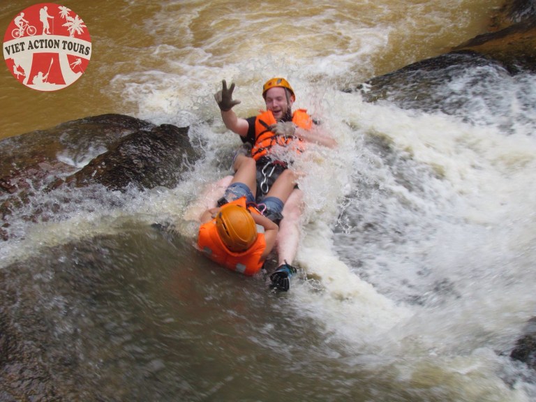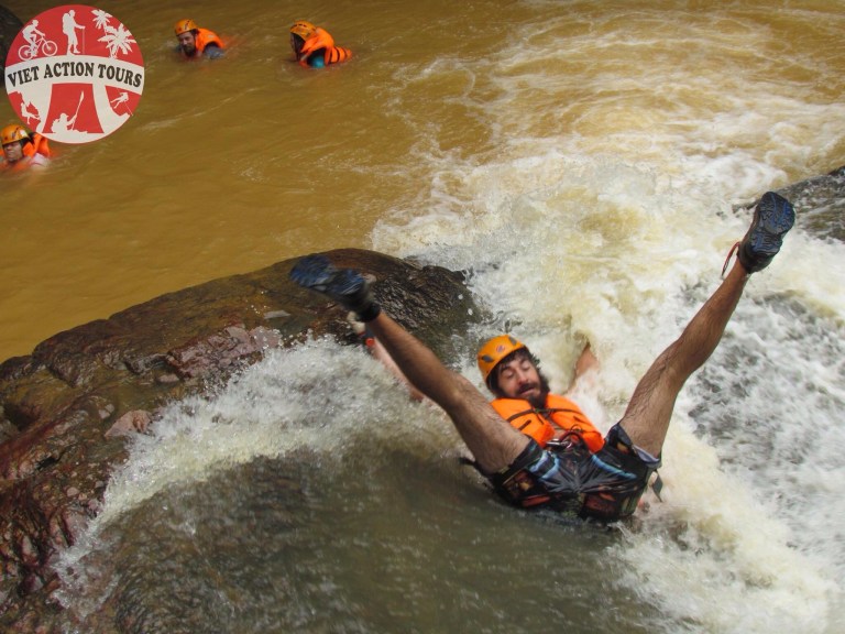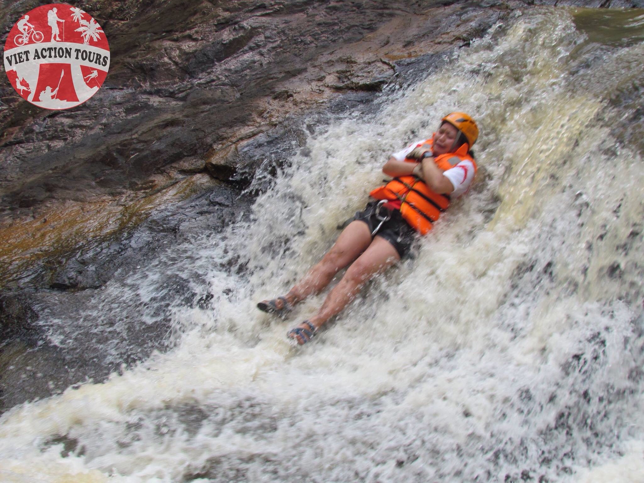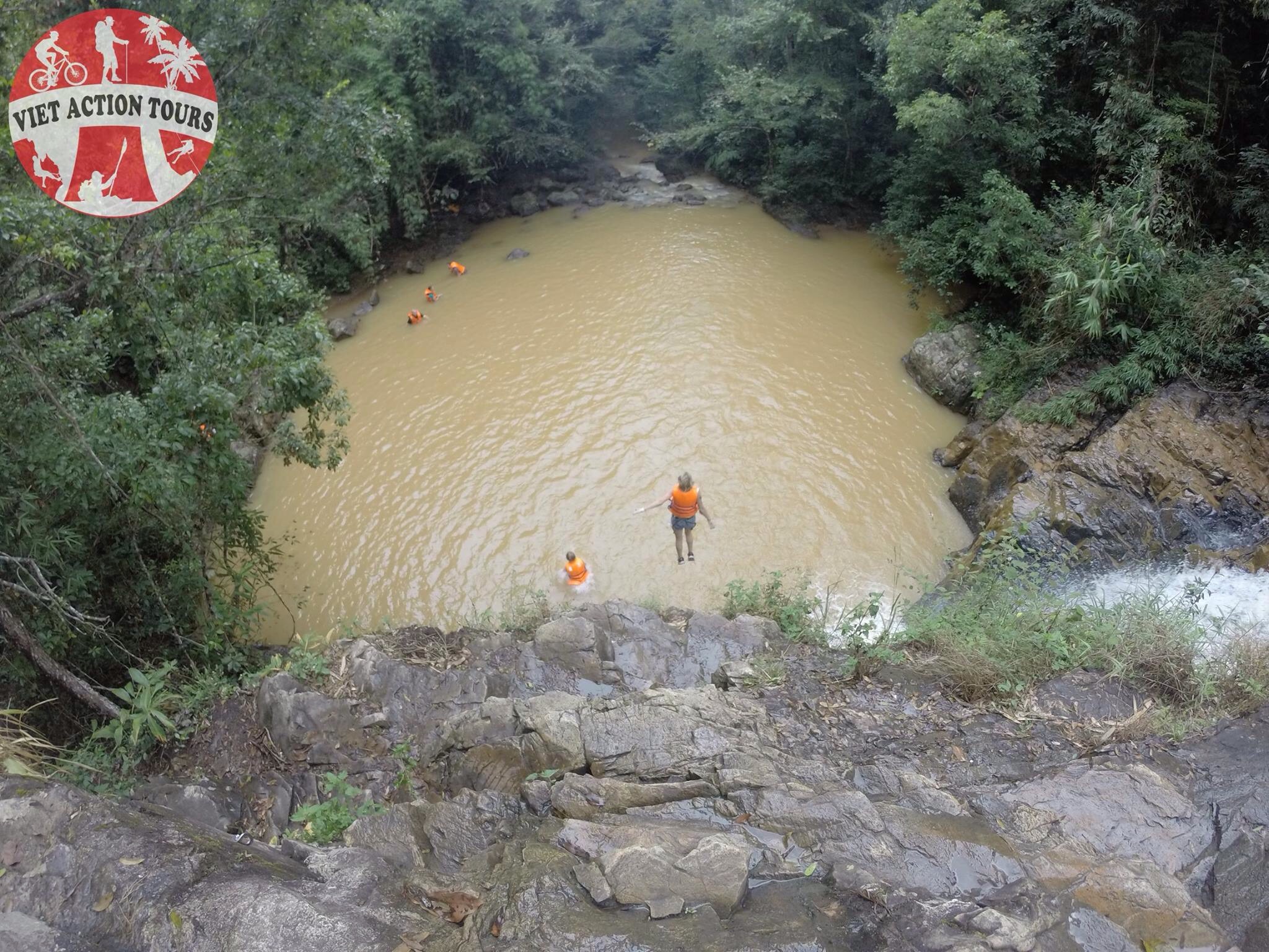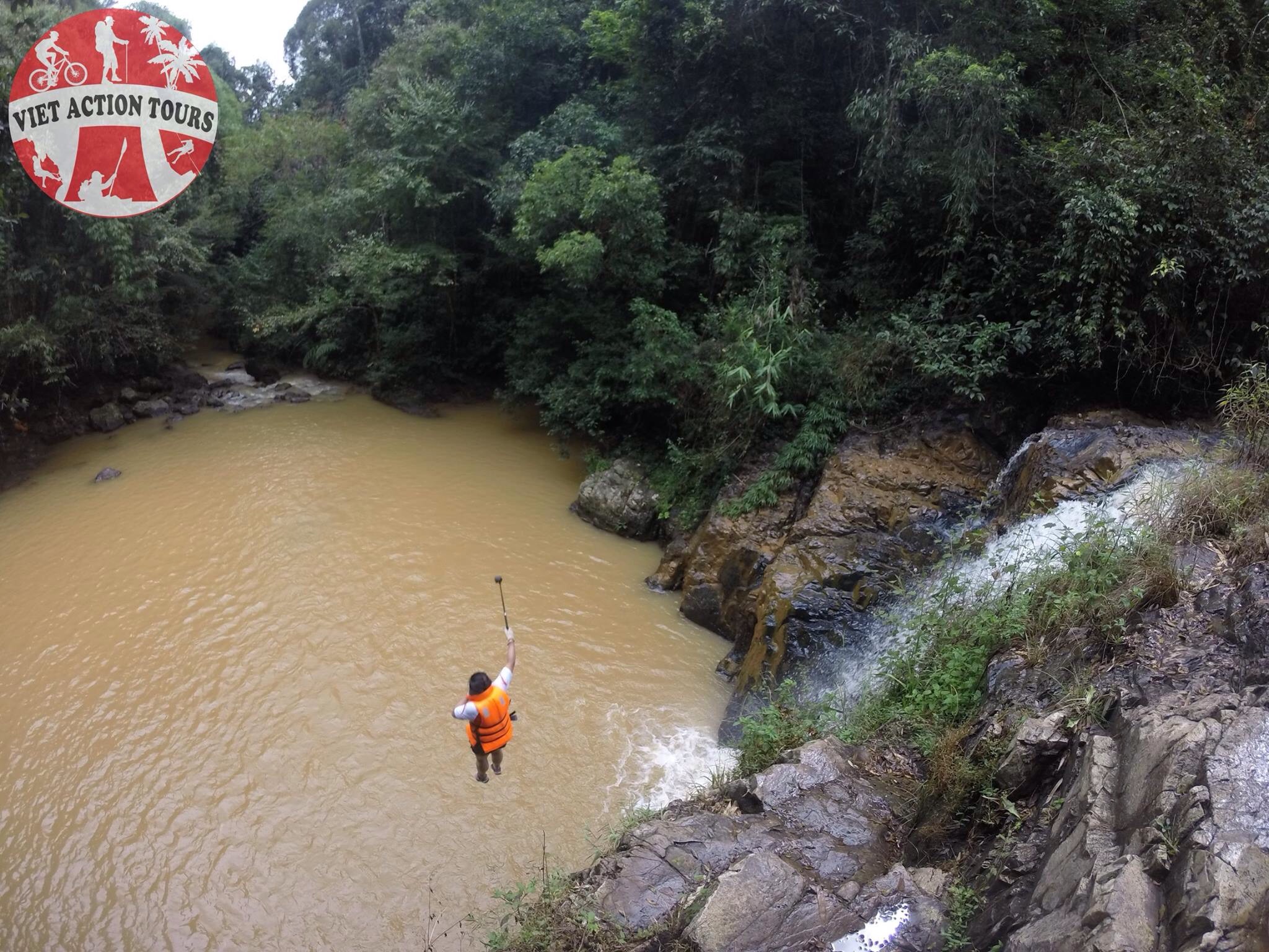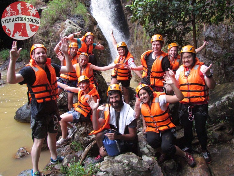 A great day out meeting really cool people and being brave at the DaLat waterfalls Through Viet Action Tours…. After an hour trek through the forest slipping down mud and rocks holding onto branches to stay up was good fun and prep for Borneo. Impressed with my trainers making me pretty much stay up vs the others sliding down so a great test. So we had to first learn how to abseil then did some waterfall slides which was fun! Then we attempted the first abseil at 25ft which actually wasn’t too bad apart from I didn’t want to let go the rope and jump after slipping and not knowing how far was underneath me!!