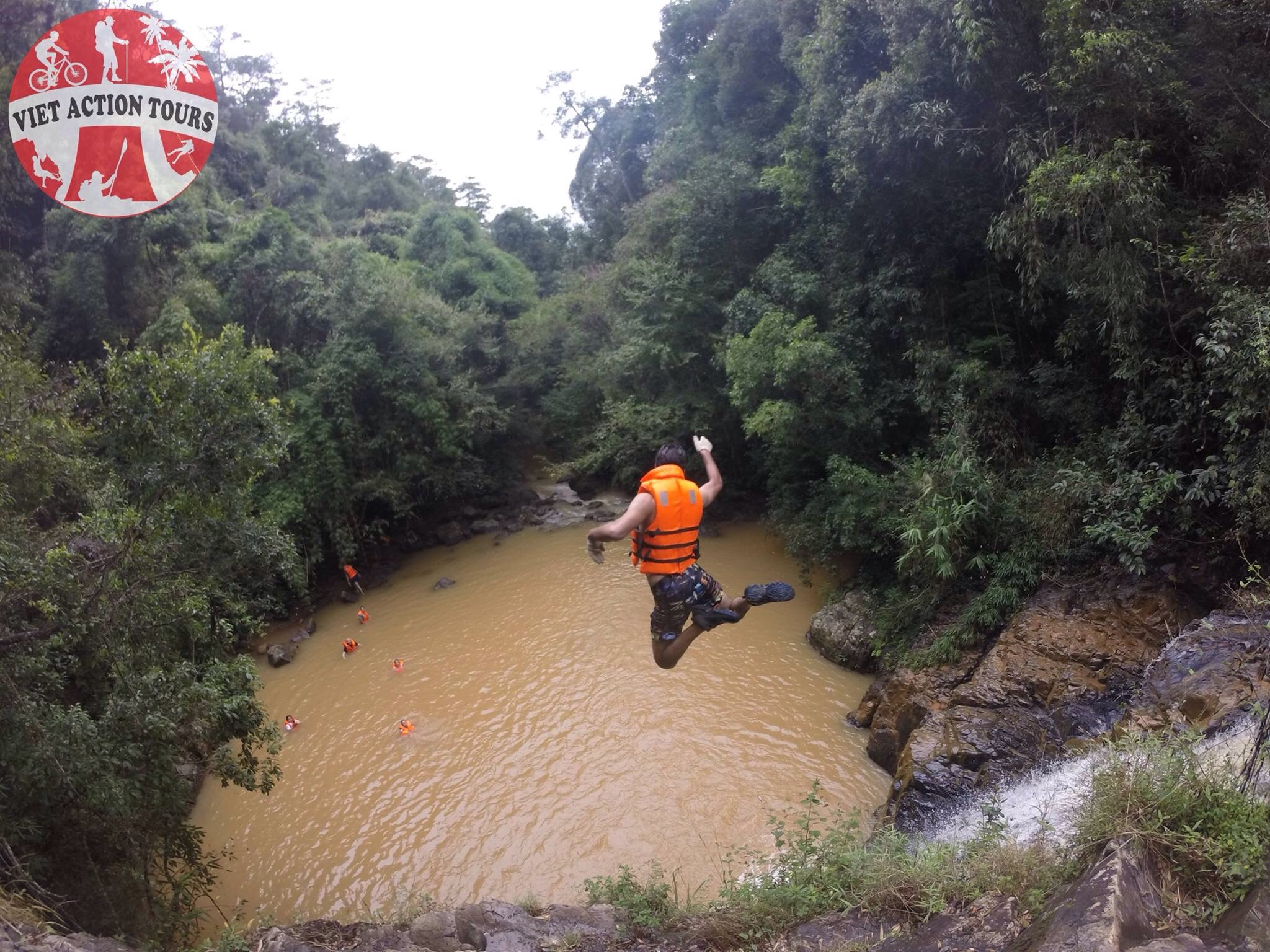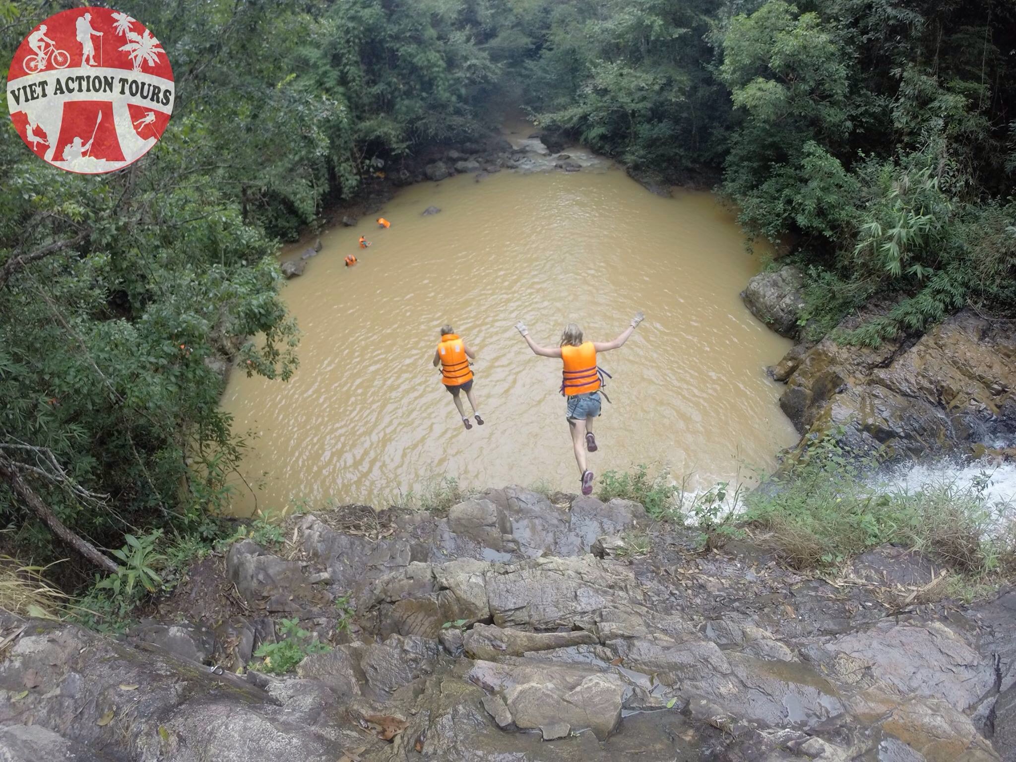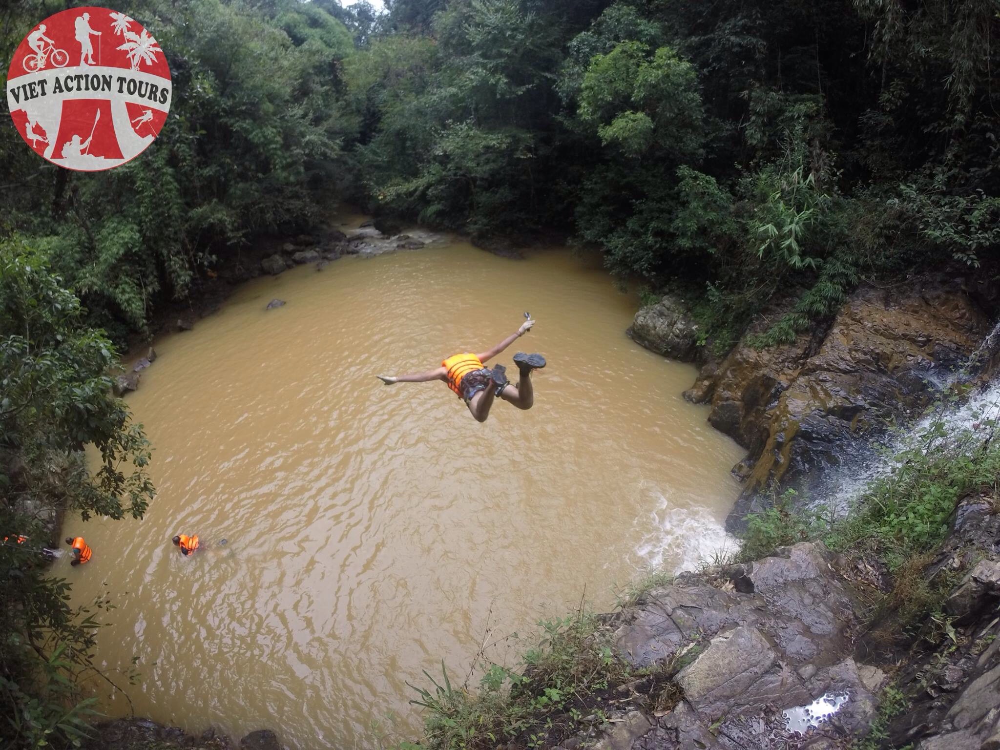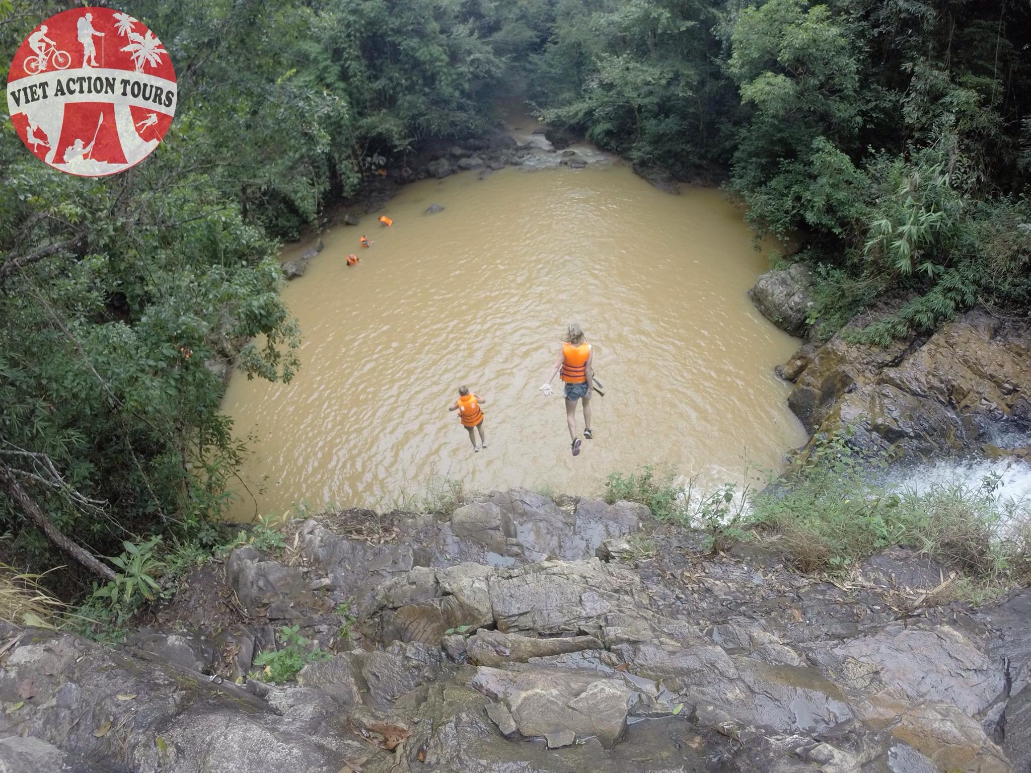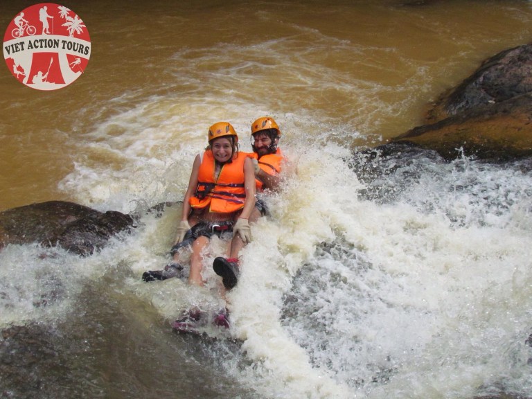 A great day out meeting really cool people and being brave at the DaLat waterfalls Through Viet Action Tours…. After an hour trek through the forest slipping down mud and rocks holding onto branches to stay up was good fun and prep for Borneo. Impressed with my trainers making me pretty much stay up vs the others sliding down so a great test. So we had to first learn how to abseil then did some waterfall slides which was fun! Then we attempted the first abseil at 25ft which actually wasn’t too bad apart from I didn’t want to let go the rope and jump after slipping and not knowing how far was underneath me!!