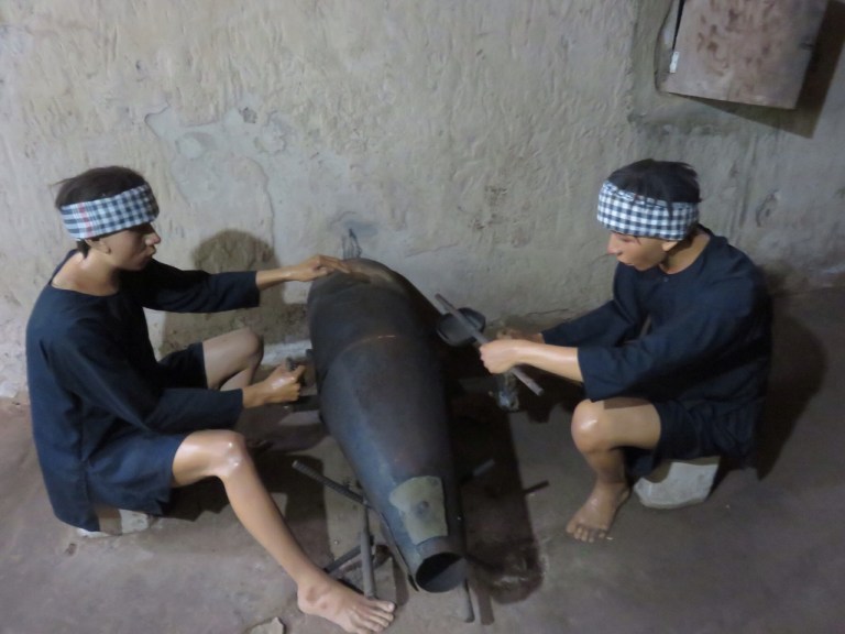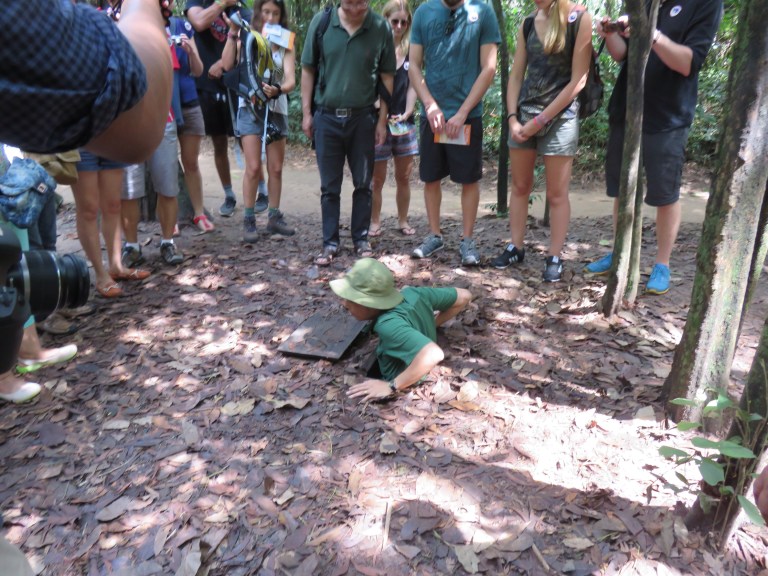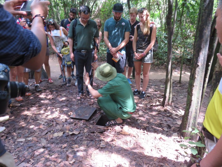 So arrive at the tunnels and its so hot and the thought of crawling through a tunnel isnt apoealing but im game! Learning all about the stratagies they used was so interesting and can see how much of an advantage they had. The various traps they had were lethal from the large tiger trap which could kill 5 americans to more twisted ones like window trap, seesaw, swinging up and fish all involving spikes and leading to a pretty grim death! They were also volunteers due to loosing families in the bombs so very keen to do what they can.
