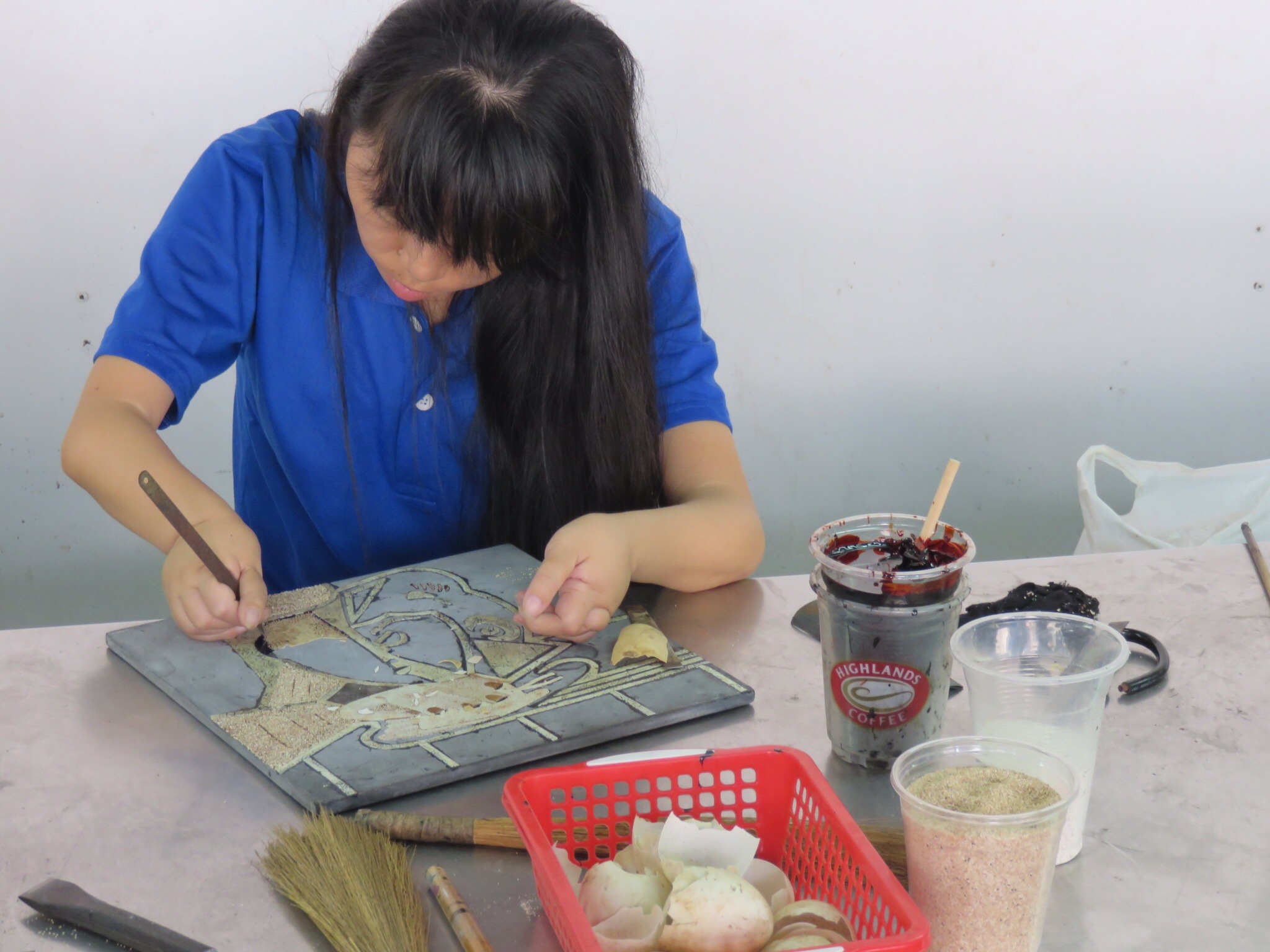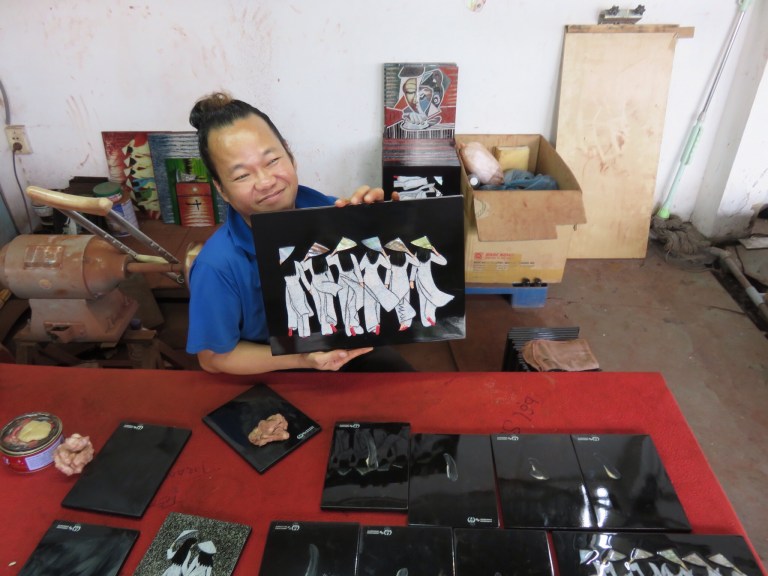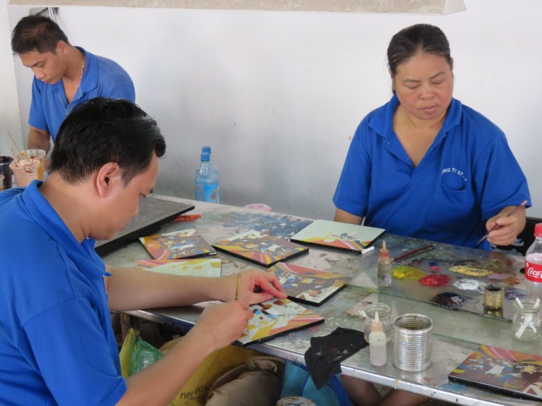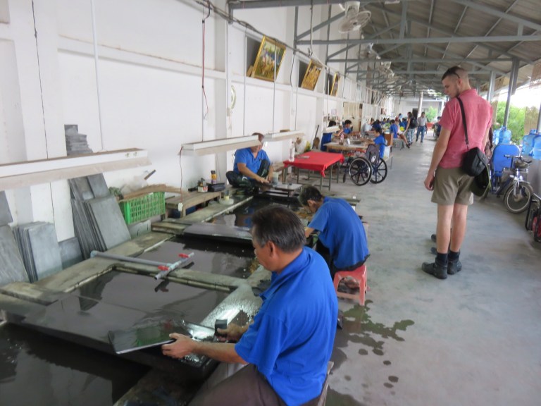 Early start leaving at 8 so not best day to choose staying in my first dorm lol as evetyone asleep when need to leave. The bus is very hot and sticky with no ac so think I definately prefer travelling by motorbike! We stop off at a arts and craft place where the locals are making by hand all the pieces to sell which are very pretty. Its interesting to see all the different parts they do and how much work goes into each piece. They all seem very proud and happy to show it off for the picture’s. It really reminds me of karin kidd – aka sister – who is a craft person would like making these herself. Its nice to see how they are made. If I wasnt going on travellering for 8 months there are some good xmas ideas could have taken back!