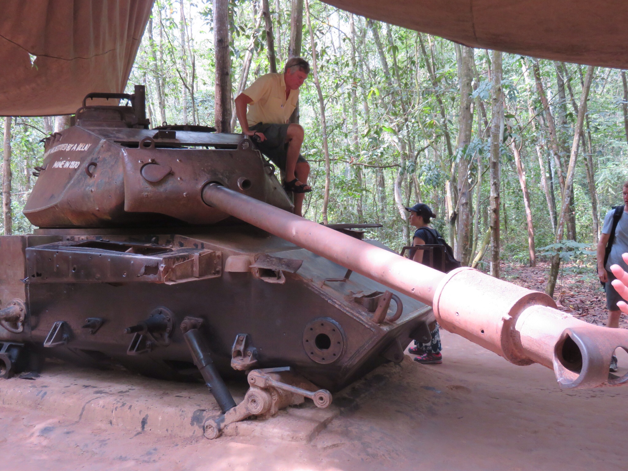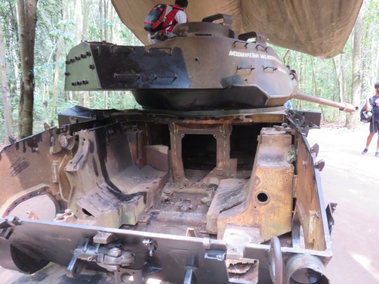 So we then all do the tunnells which is last part before we finish. The guide asks us how far we want to go with a few saying 100m who are actually the taller guys and who end up going out the first check out point as im behind them. Luckily i dont feel its too claustrophobic and i seem to be a perfect fit actually and can avoid squatting all the way as makes the thighs ache…. so i keep going and its mainly the heat and darkness i dont like but before i know it im out and done the 100m. It must have been hard for them to do all time. Great to experience it and get appreciation as to what they did as tend to always see it more from the American side.