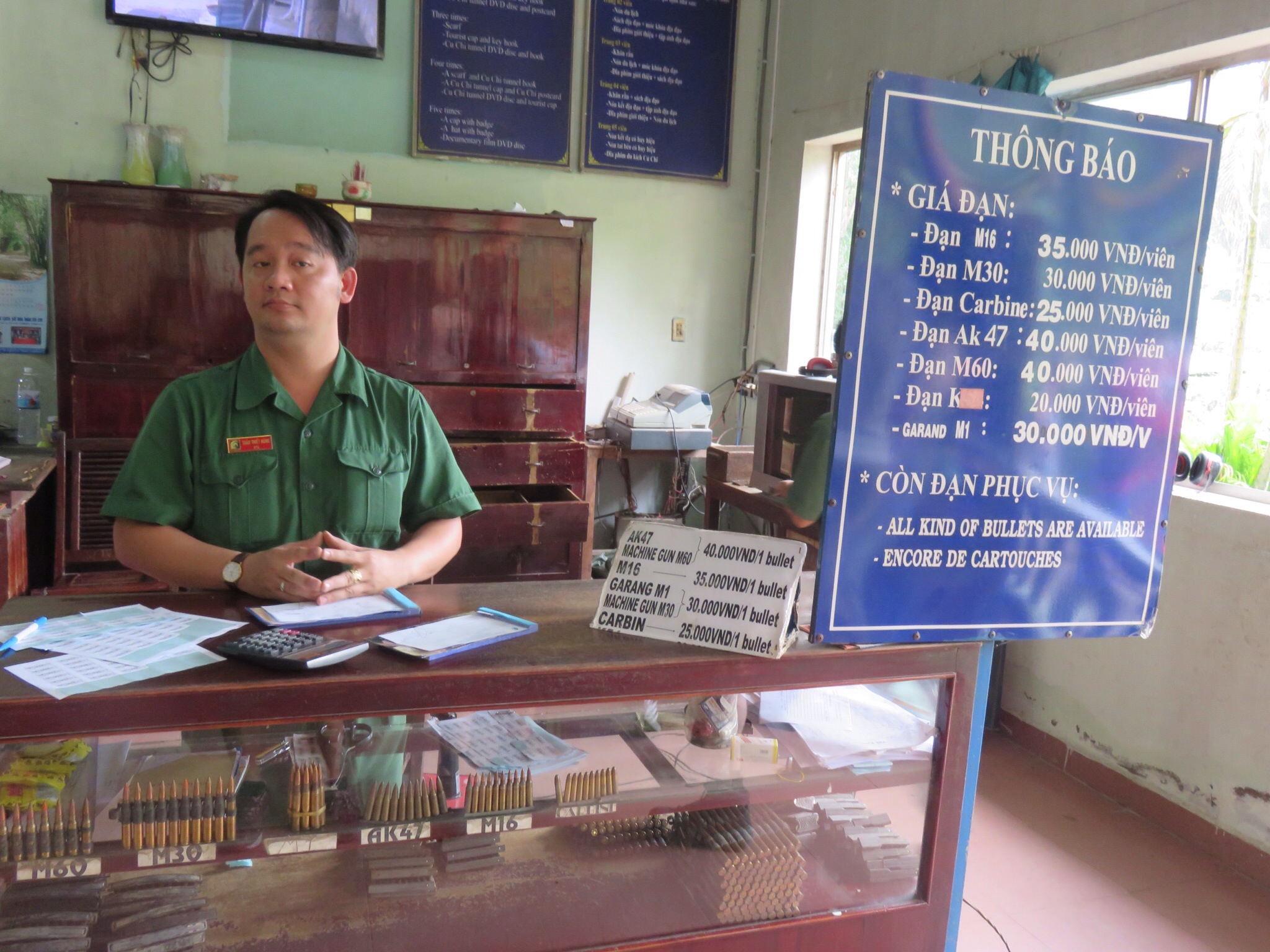 We see a bit on the ammo and they used to take the tnt from the bombs afterwords which was pretty crazy and the they also had some serious gun power with ak47, m60 and m30’s. Some of the group do the shooting as you can buy 10bullets for 30/40k but im not so sure and would rather have an actual lesson before shooting a gun haha!