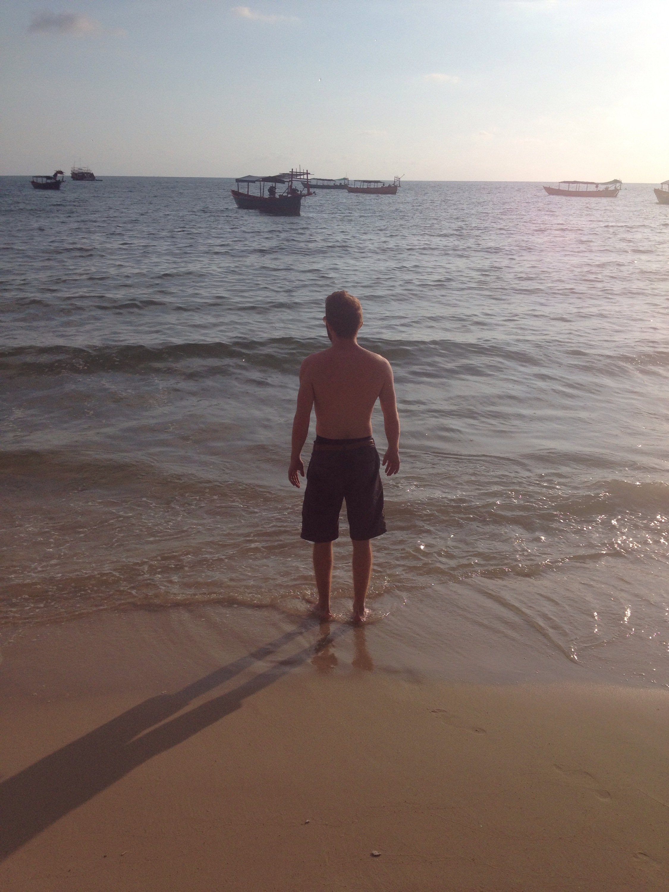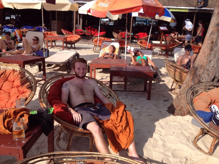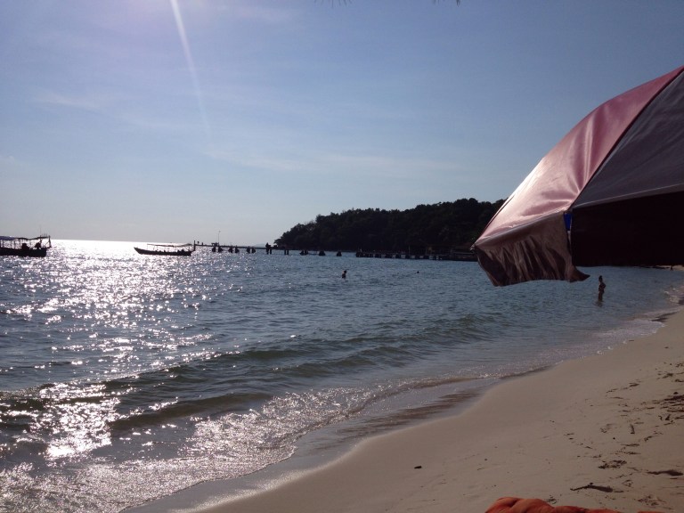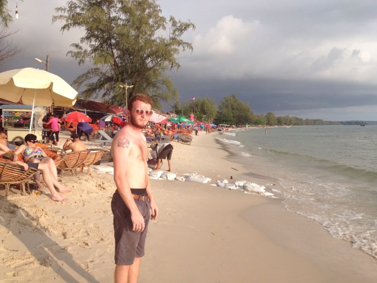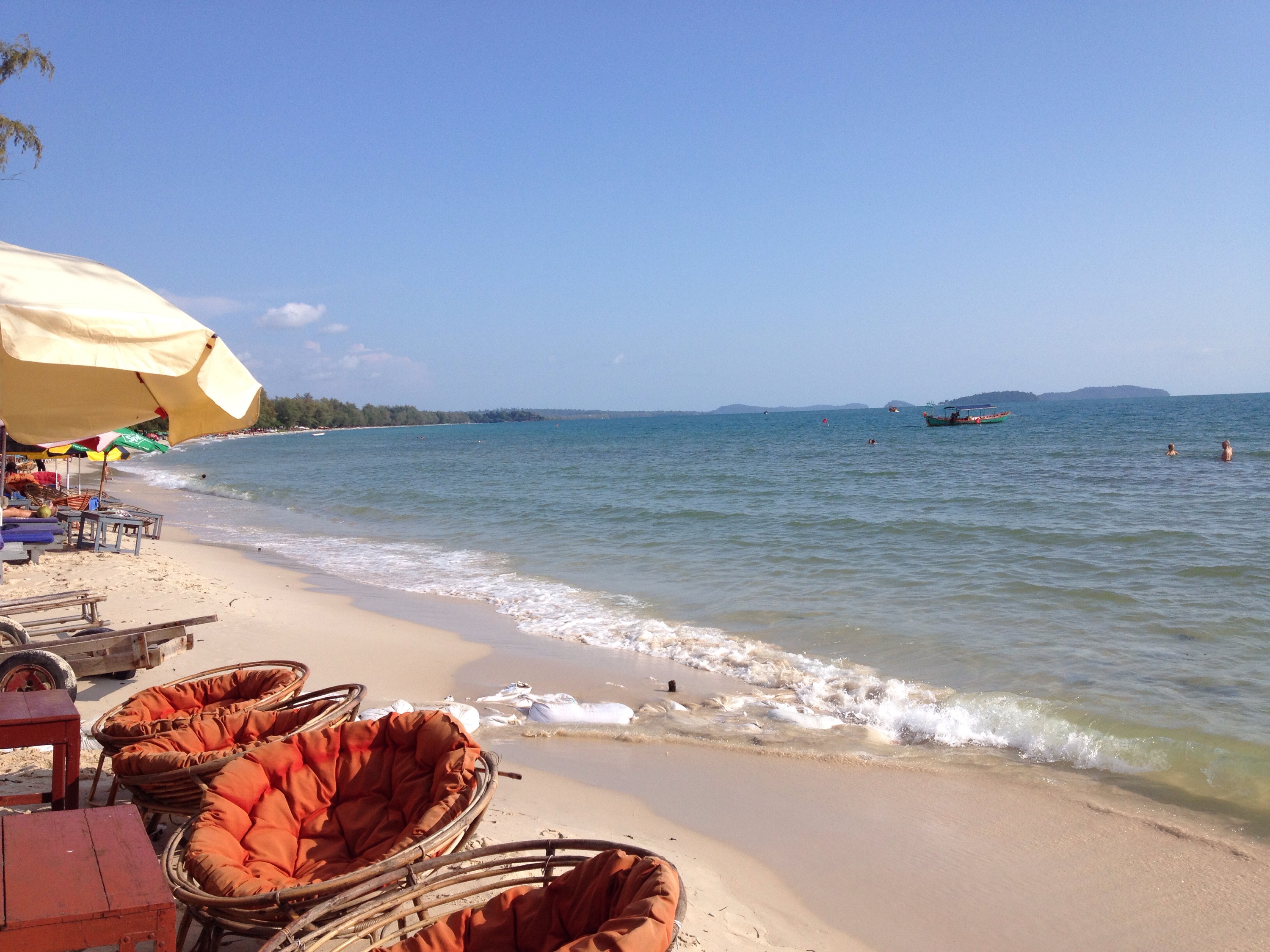 So after another much later than planned night til 5, we have to get up at 6.30am for our bus to Sihnoukville. Going with George and Scott the bus ride for 4 hours isnt the best. Sitting squeezed in at the front with Scott falling asleep on me most of time as out for the count plus me trying not to look at the road ahead and watch how the driver is constantly overtaking so cars in the opposite direction are flying at me. Arrive there about 12.30pm at our hostel One Stop. Think would say its the nicest hostel dorm have stayed as nice tranquil pool and lovely showers which I definately spent too much time in lol. Even free hairdryer so pushed the boat out and straightened my hair just because Ive not had hair up for weeks haha. Spent most of the day chilling by the serendipity beach constantly being hassled for massages which i eventually gave in and got a pedicure lasting ages nearly an hour spent doing foot massage and polish for $7. Also got roped into threading of my arm pits which is a first and more painful than eyebrows so wont be doing that often but its great for backpacking! The beach is nice and quite busy with every bar having outside tables. Loving the sea as so warm although not that clear but still nice to swim in the sea as first time since being away. We stay there for the sunset just chilling in a bar on the beach. At one point we have to duck inside as we get a little storm which was an odd one as the sun was totally shining and sunbathing but raining at the same time. Luckily it doesnt last too long and can head back to get ready for a big night out in town!