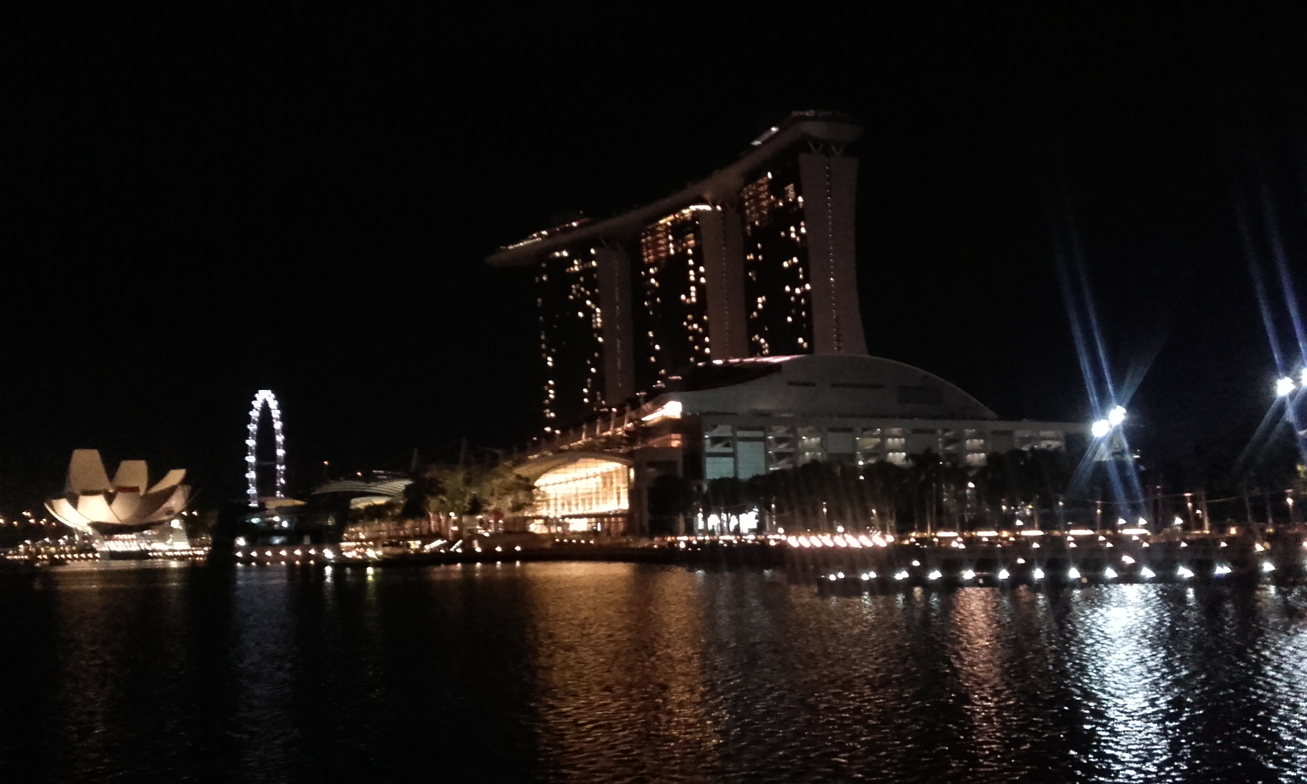 First stop is Bayfront station Marinabay Sands which is a huge hotel, shopping mall, casino and nightclub with skypod roof so stands out. Very expensive too and as I walk in to check it out see more xmas trees and your gucci and D&G style shops and just a maze of entrances to different parts of the tower. Surely would always get lost staying there! It backs onto the harbour promenade and thats lovely to walk along with all the skyline and buildings lit up. The buildings are cool and mix of the big banks and little buildings like the fullerton hotel. The big flower shape building next to Louis Viutton odd cube type building is probably the most eye catching apart from marina sands itself with the club on the roof blasting out music and lights. Further along provides lots of seats and bars to view the buildings. I ask the general direction to walk to chinatown, as want to walk through it as its on route back to hostel anyway as im using the MTR map as my guide. It doesnt take too long and find where all the other hostels I was looking at were as all nect to each on one road. I think it quiet as its already 1am so everthing shut, even food. So next stop on MTR would be clark quays and this is the lively nightlife part of Singapore from what I can make out. It looks really cute with nice outside bars along the riverband lit up bridges. As I go further in in the middle there us a lit up floor fountain display and then streets heaving with mostly local people to get into the clubs, one in particular seems popular with que outside and tables available for $500-1000 singapore dollar so have to push through all the dressed up people ready to party Friday night which usually is me!