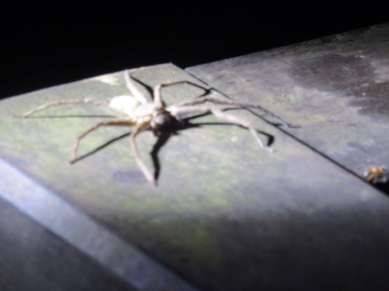 So later myself, Viktor and Linda do a night walk with Shirou which is good fun as it is so pitch black and my little LED light does nothing apart from light up my feet compared to his super strong torch. So after 2mins walking we come across a spider sitting on the arm of a bench – smaller version of a huntsman but it still creeps me out and think reminds us 3 that it isnt just nice monkeys around and to be careful what we touch! Shirou is quite a character and despite telling us to wear shoes he is in flip flops and keeps scaring himself thinking something is on his foot. On the look out for snakes, we arent so lucky and just see a brown owl which was cool high up the tree scoping out its next meal, a flying fox bat and more spiders but not sure what some red looking thing. Shirou is very knowledgeable about nature and tells us to watch out for the bat poo as it has amonia in it which cam smell amd make your hair fall out. There is also a resident pig in Abai called junior who is ugly but super cute with soppy eyes and just wants to snort at you lol to say hello and of course for food. It is quite fat and as Borneo is muslim they dont eat pork, Junior is well protected and lives a nice life. There are geckos everwhere too harmless. Its nice after the night walk to have a beer sitting outside looking at the river with Linda and Victor but all quite tired as up so early and do so much in a day!