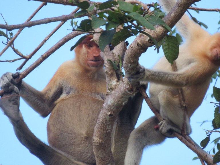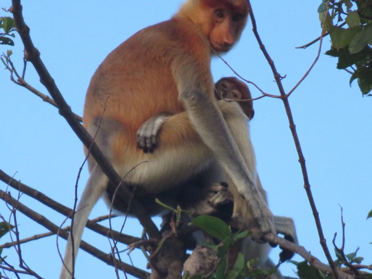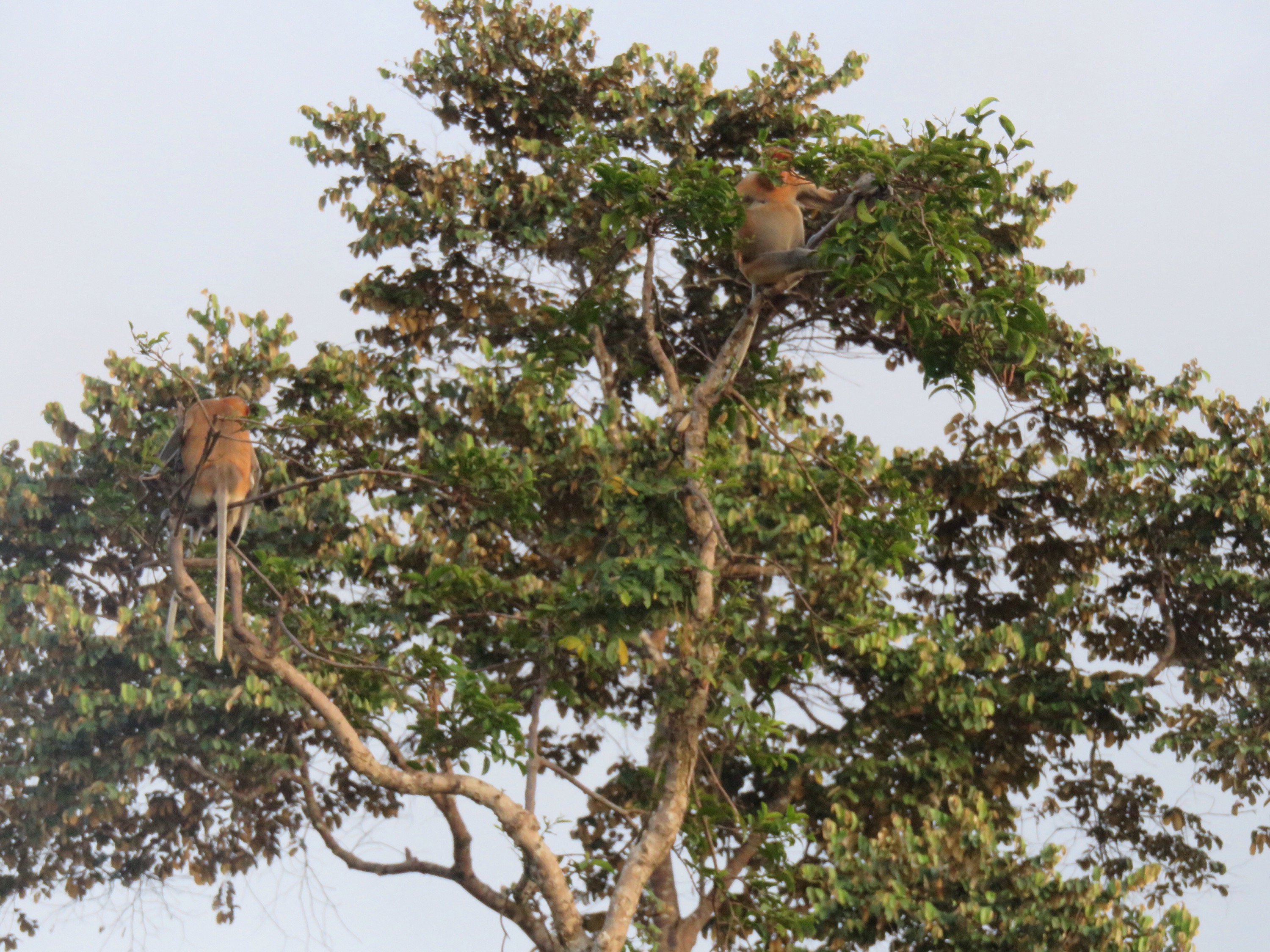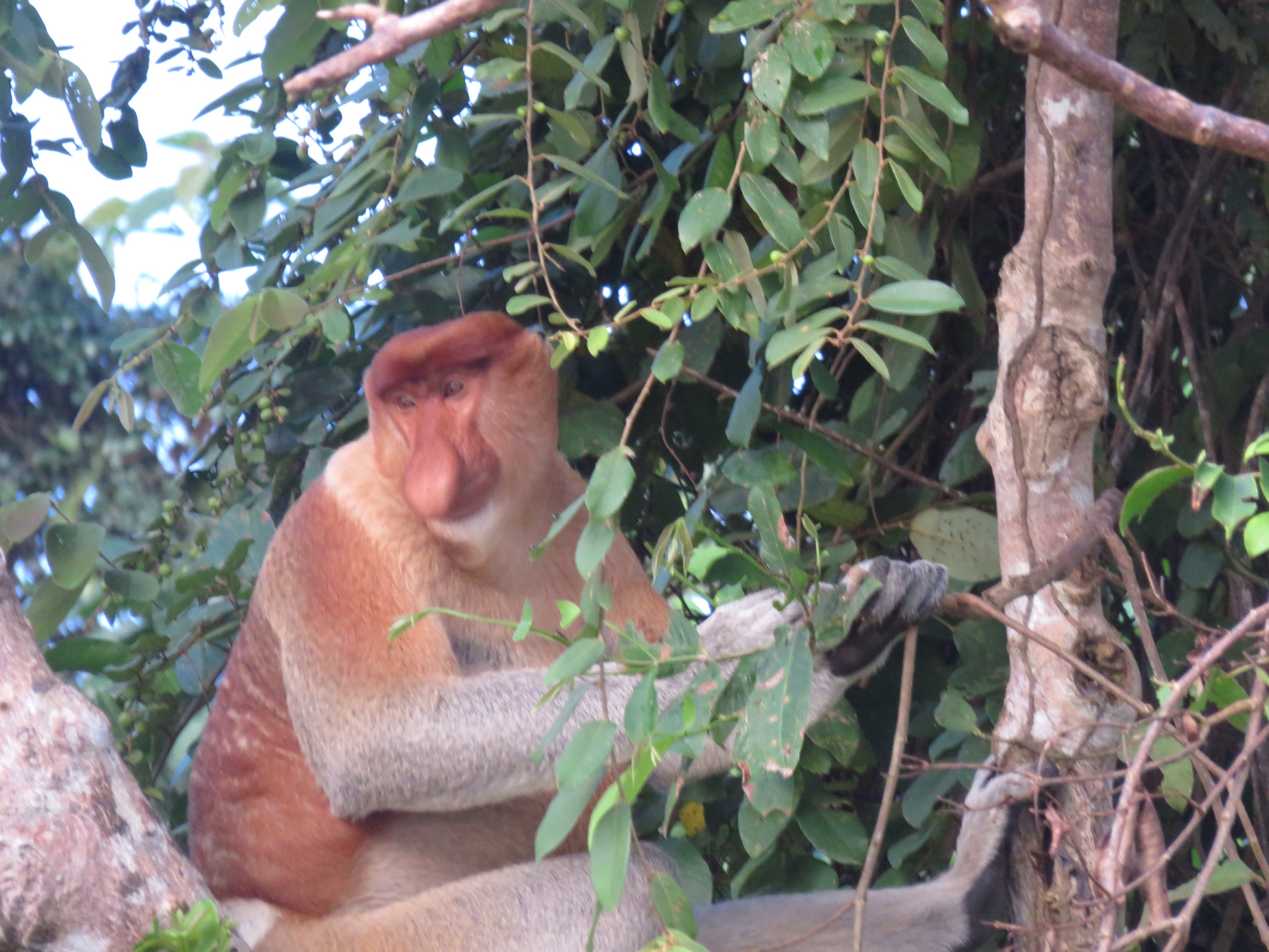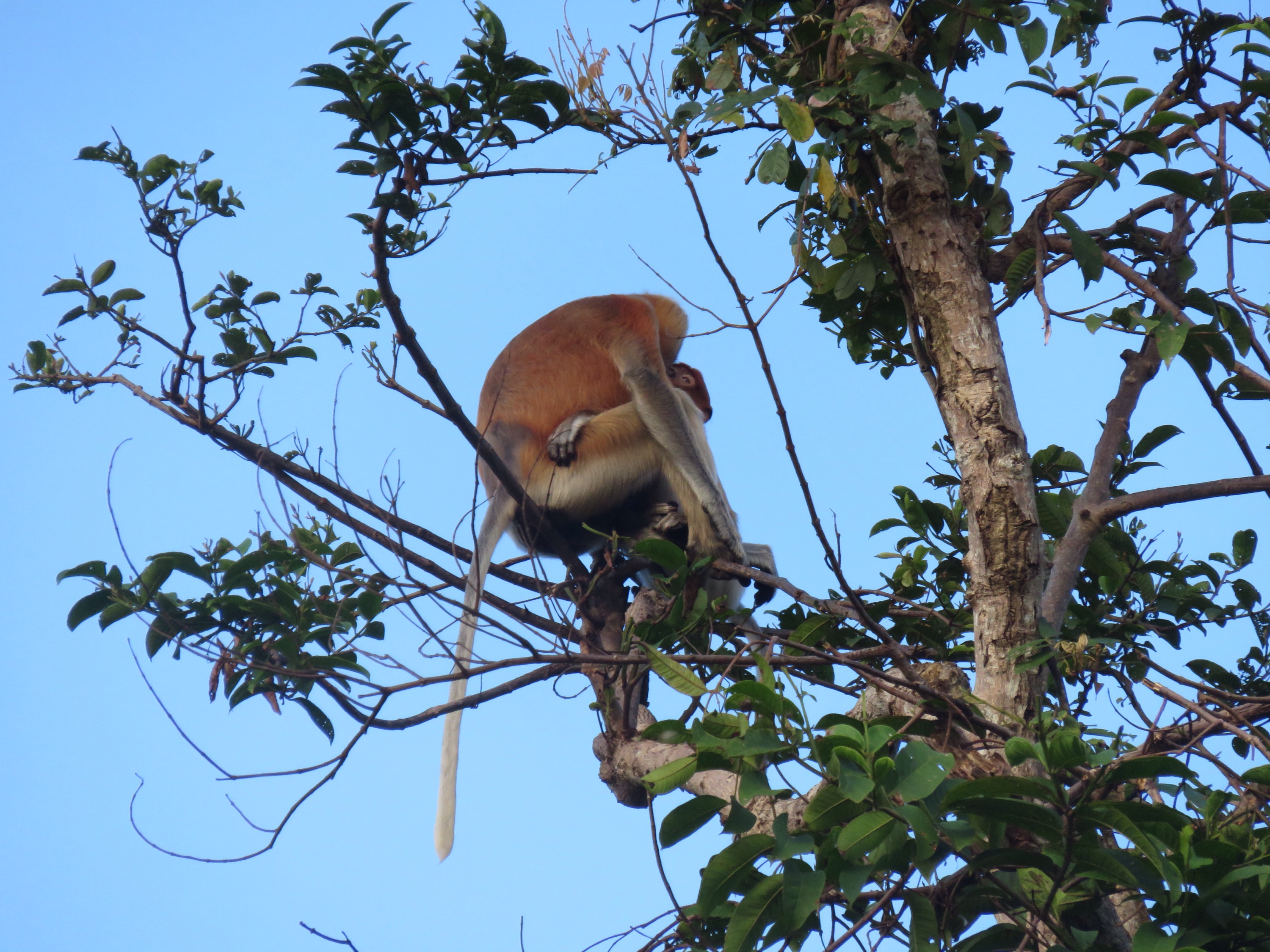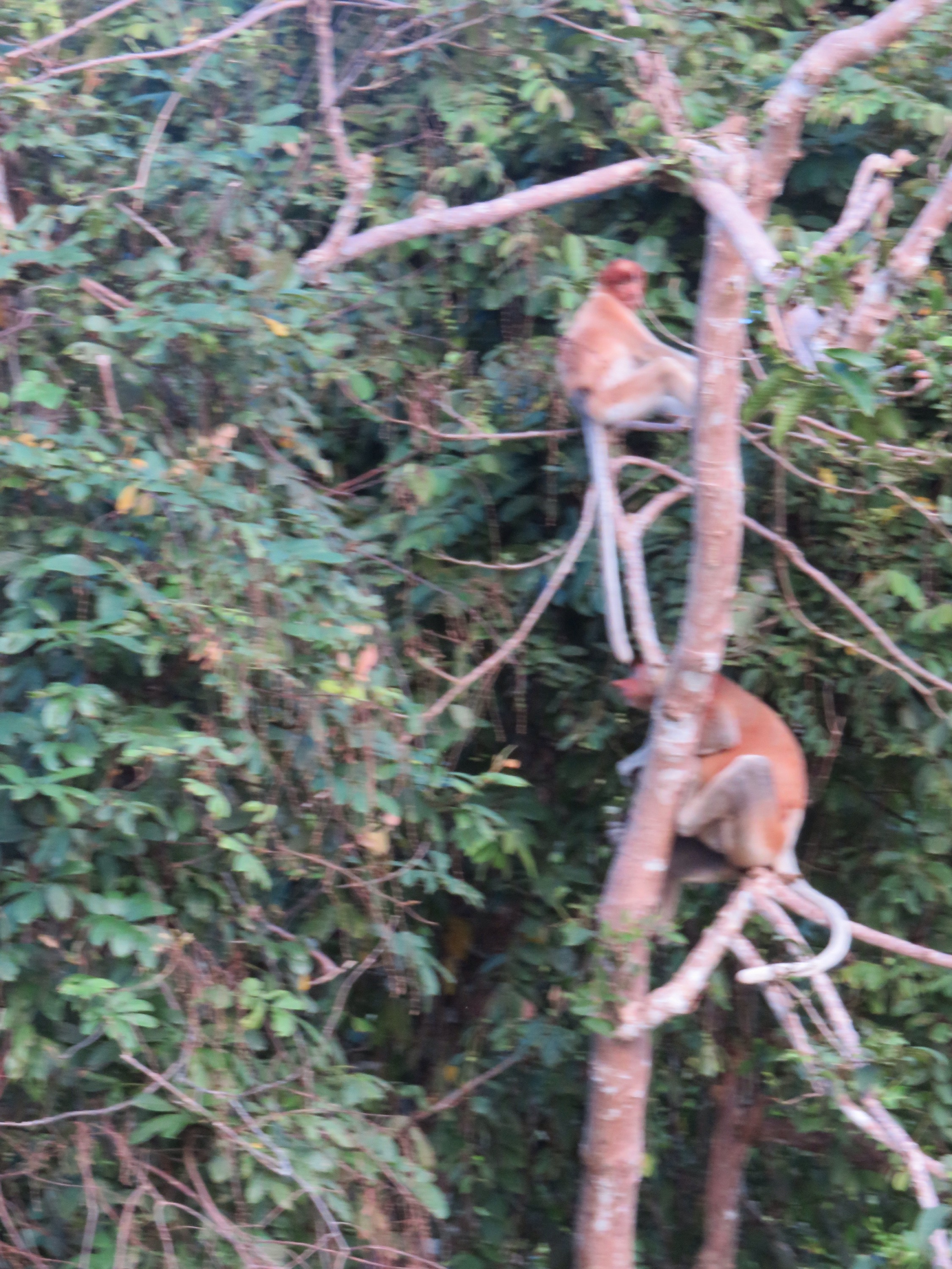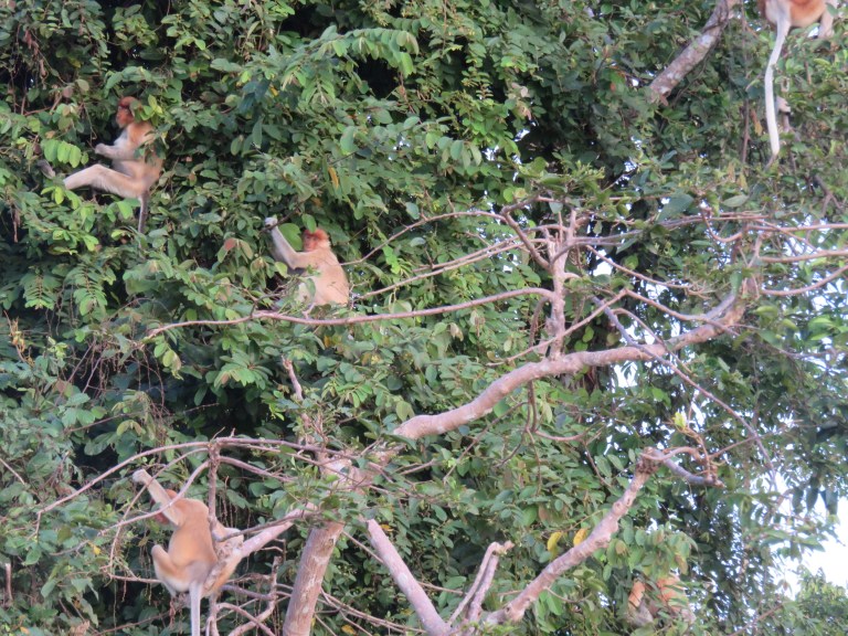 So about 4.30pm the 3 of us and only residents at Abai head out in the little boat to see what we can find. Shirou saw lots of orangutan nests so heads there first. After a bit of hunting about (as they are not the easiest to find as always solo) we spot one really high in a tree hanging by one arm the typical tan pose. So after a few pics we head off and find a big group of probiscous monkeys which are the funniest and ugliest monkeys seen, but they are super cool and love watching them. Great jumpers. The male is the best to watch with the biggest nose and aggresive faces it pulls plus other things sticking out haha which are quite at eye point but that is it’s thing to get the ladies!