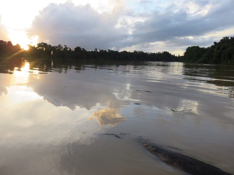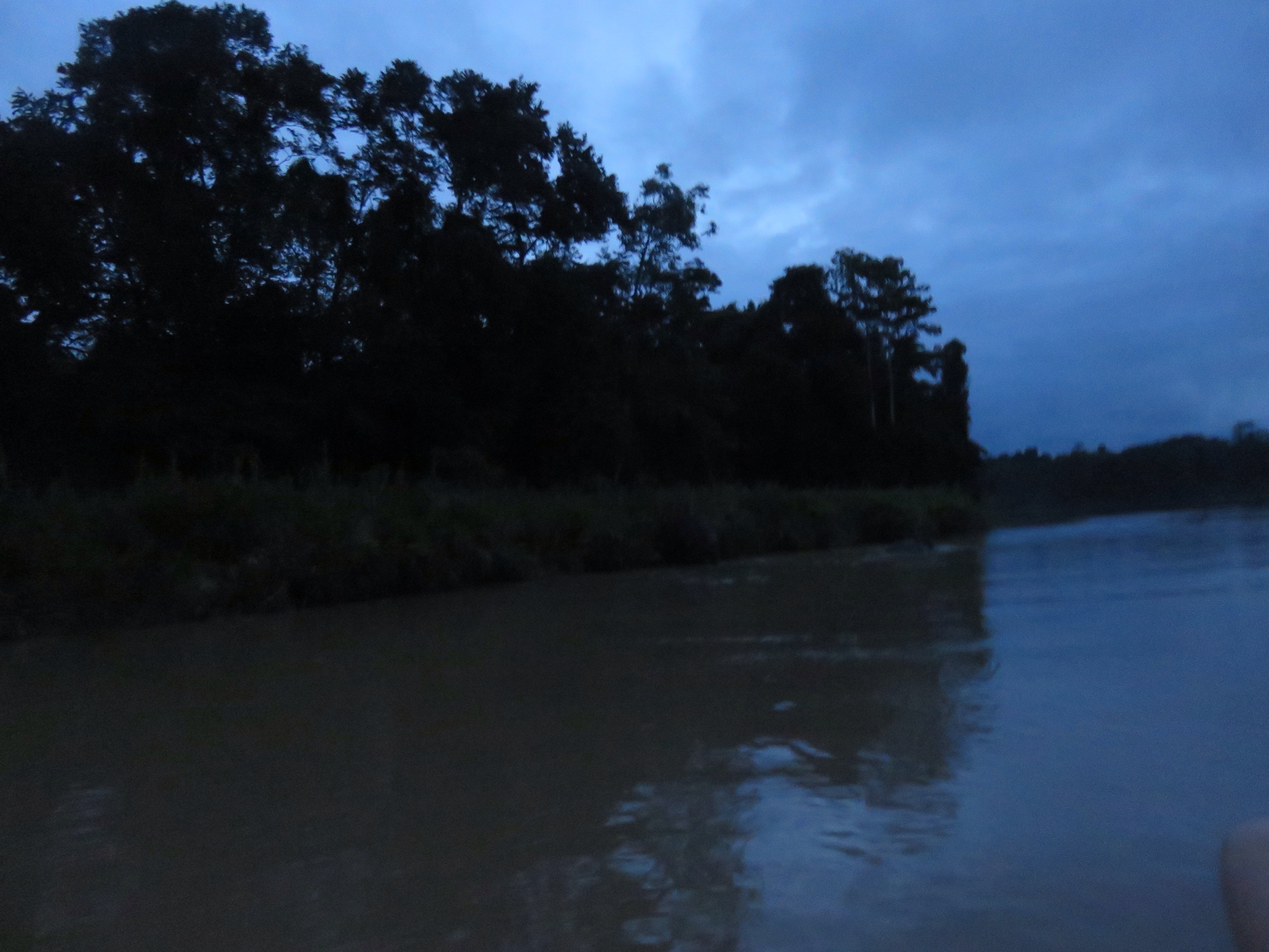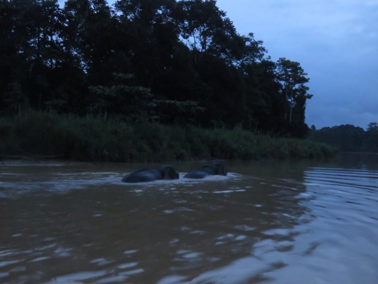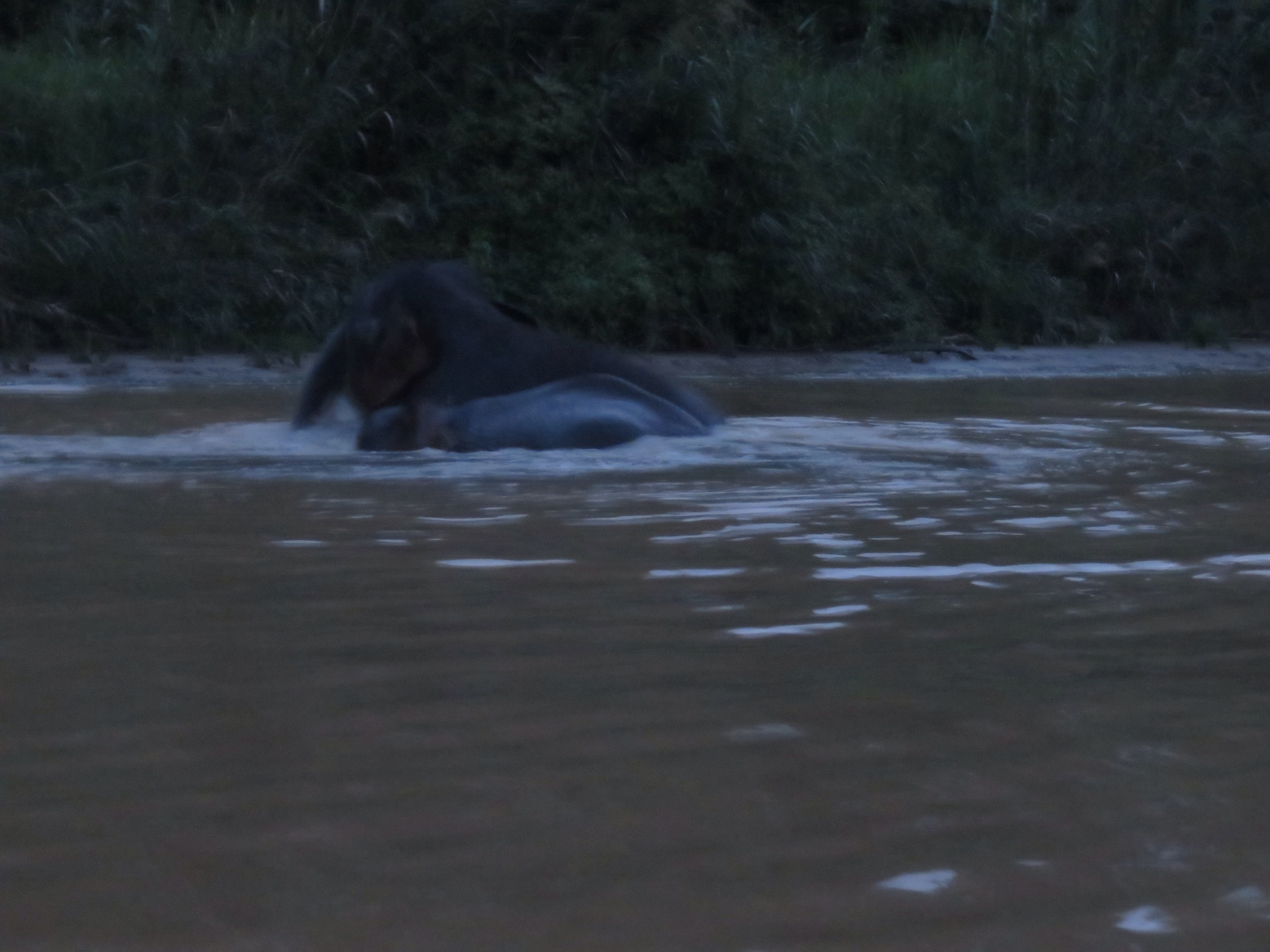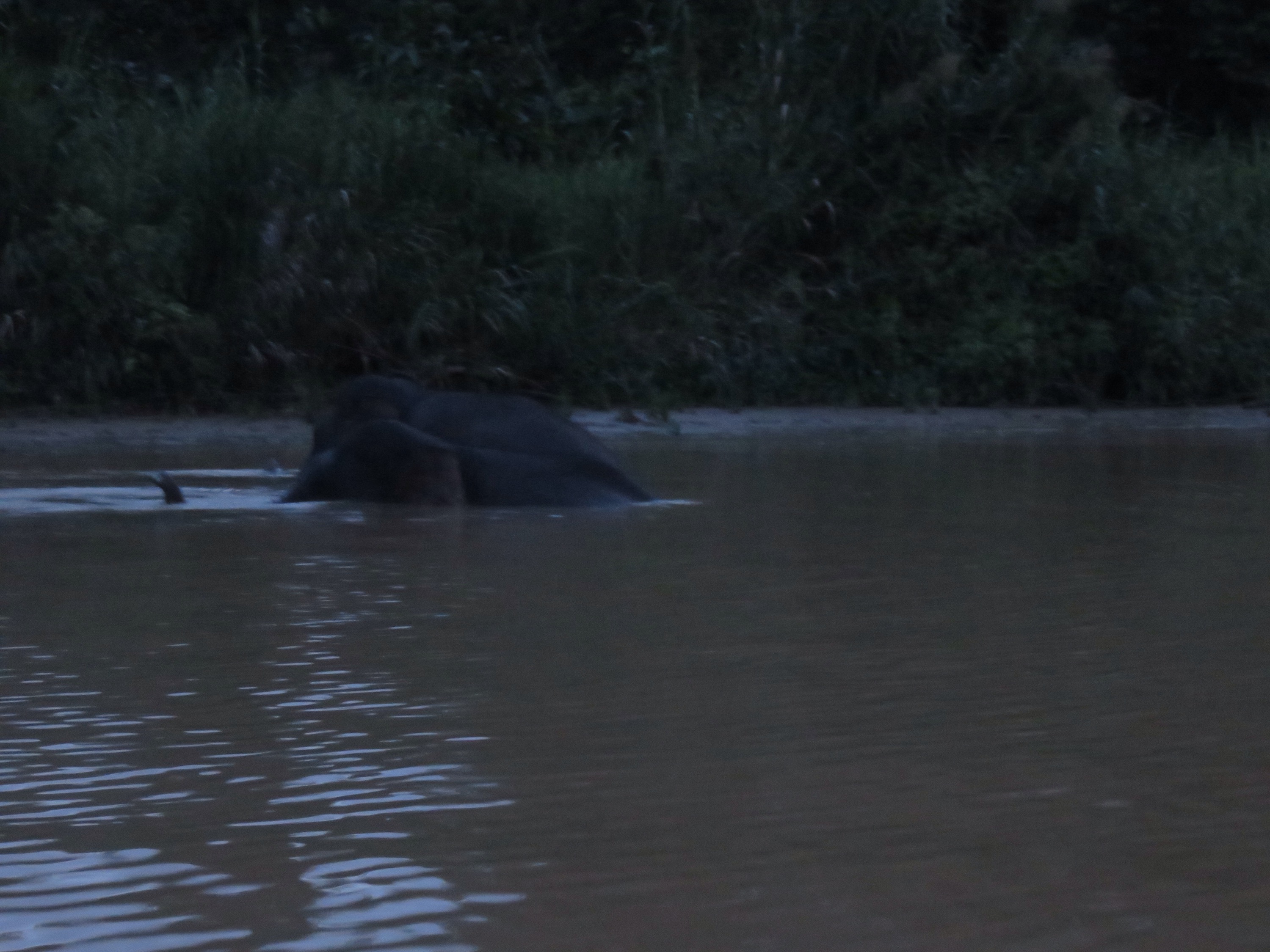 As it starts getting dark we head back to Abai but on the way see a salt river crocodile hidind under the water and only visable from the light shining off the eyes. Also see a pair of elephants bathing and playing as it starts to get dark. Smaller than other elephants it is still big and a cool end to the night safari. They get out the bankside and struggle a bit as so heavy but make it through and Shirou tells us that the ear flapping they are doing as they get out is there way of communicating whats going on and where to next. It is too dark now to take pictures now as the flash would startle and stress them out.