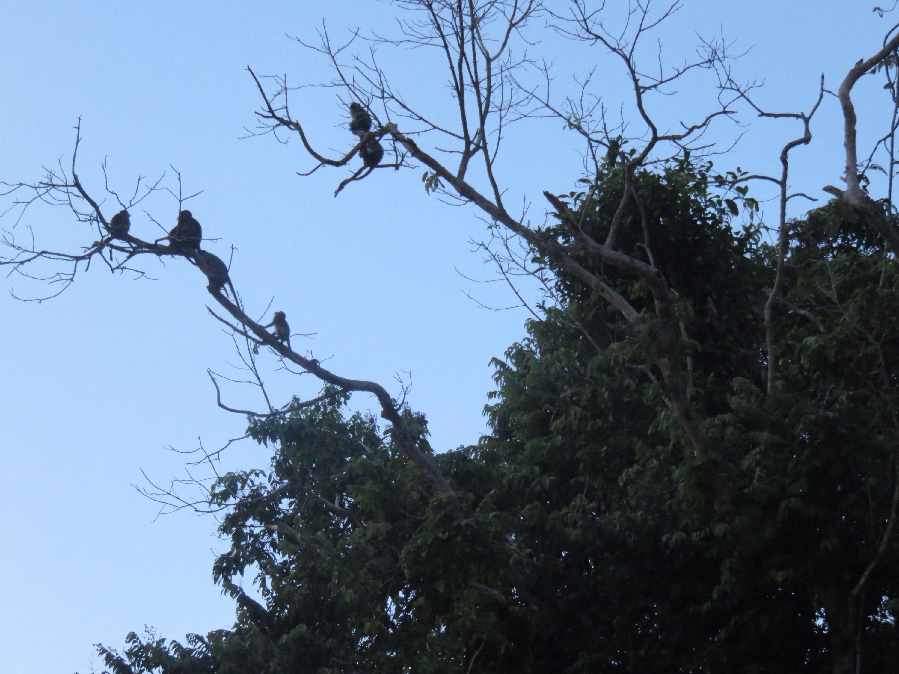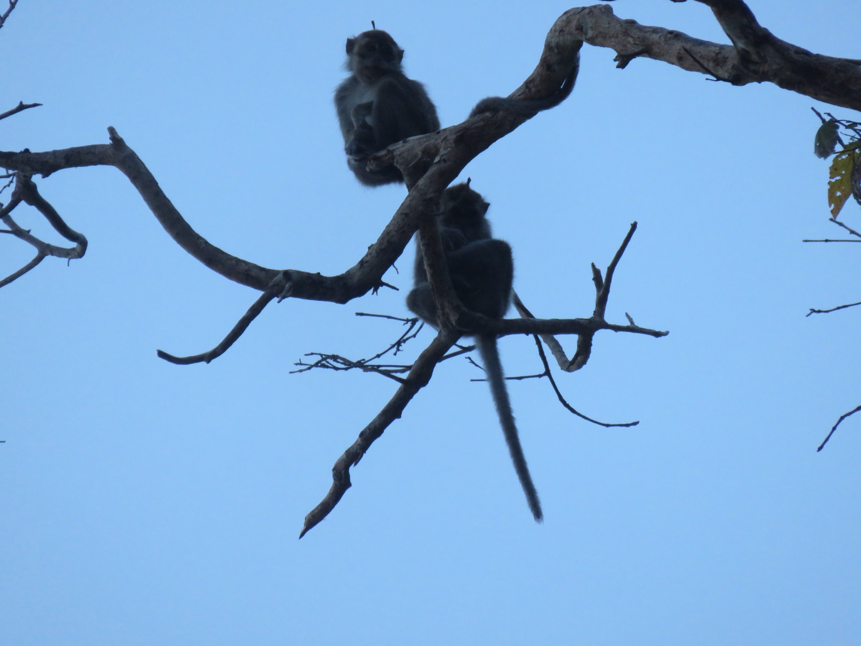 The other type of monkey we see are the long tail macau and they like to be in groups and like to sleep sitting on the edge of the tree as they are good swimmers so if a leopard climbs up they can jyst fall straight into the water. They are also jumpers and jump between trees looking very cute and naughty with a few baby ones there too.