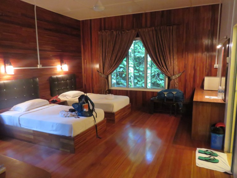 To get to the first place Abai lodge we have to get a speed boat across which in total takes 1.5hours. The first bit we cross is the sea and is huge and very wide. This goes on for about 45mins before we get to the mouth of the river and it narrows a lot but is still wide and so long with mile of mile of jungle which is pretty cool. Arriving at Abai lodge its very cool right on the river and right on the edge of the jungle so feels very remote. In fact myself and the Swedish couple linda and victor are only guests there. Its got a long boardwalk area surrounding the lodge which is full of wildlife as goes far back into the jungle and away from the lodges so great for a night walk later on. There are plenty of monkeys long tail macau mainly but also some grey hair leaf monkeys and as I sit waiting for our boat ride after we have checked in eating banans fritters the monkeys are just sitting behind me on the beams watching as are known for stealing food lol. There is a lot of history to the plaxe and Shirou telling us about attenburg staying at Abai to make documentaries and how his dad knows him from when he filmed his borneo documentary. There is also a story about in the 1930s an american couple first came to make documentaries called olsen and they made borneo and the orangutan well known but left when the war started and died in plane crash so never returned but they first created Abai.