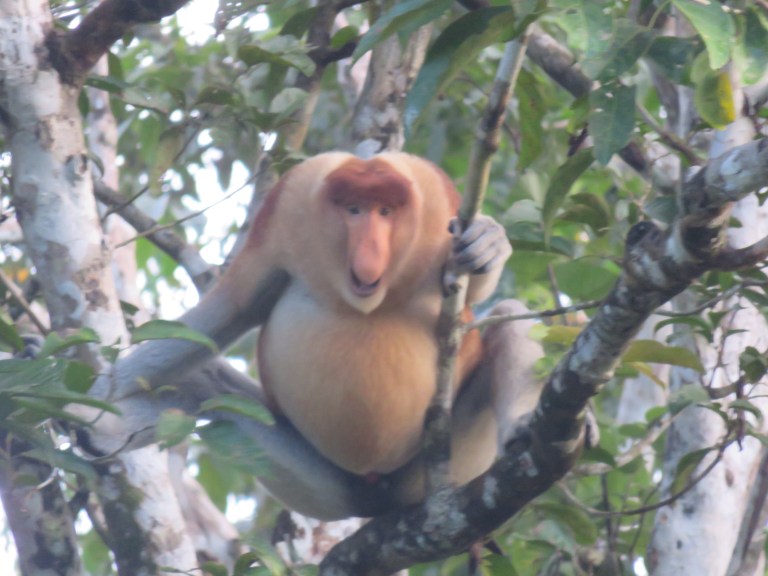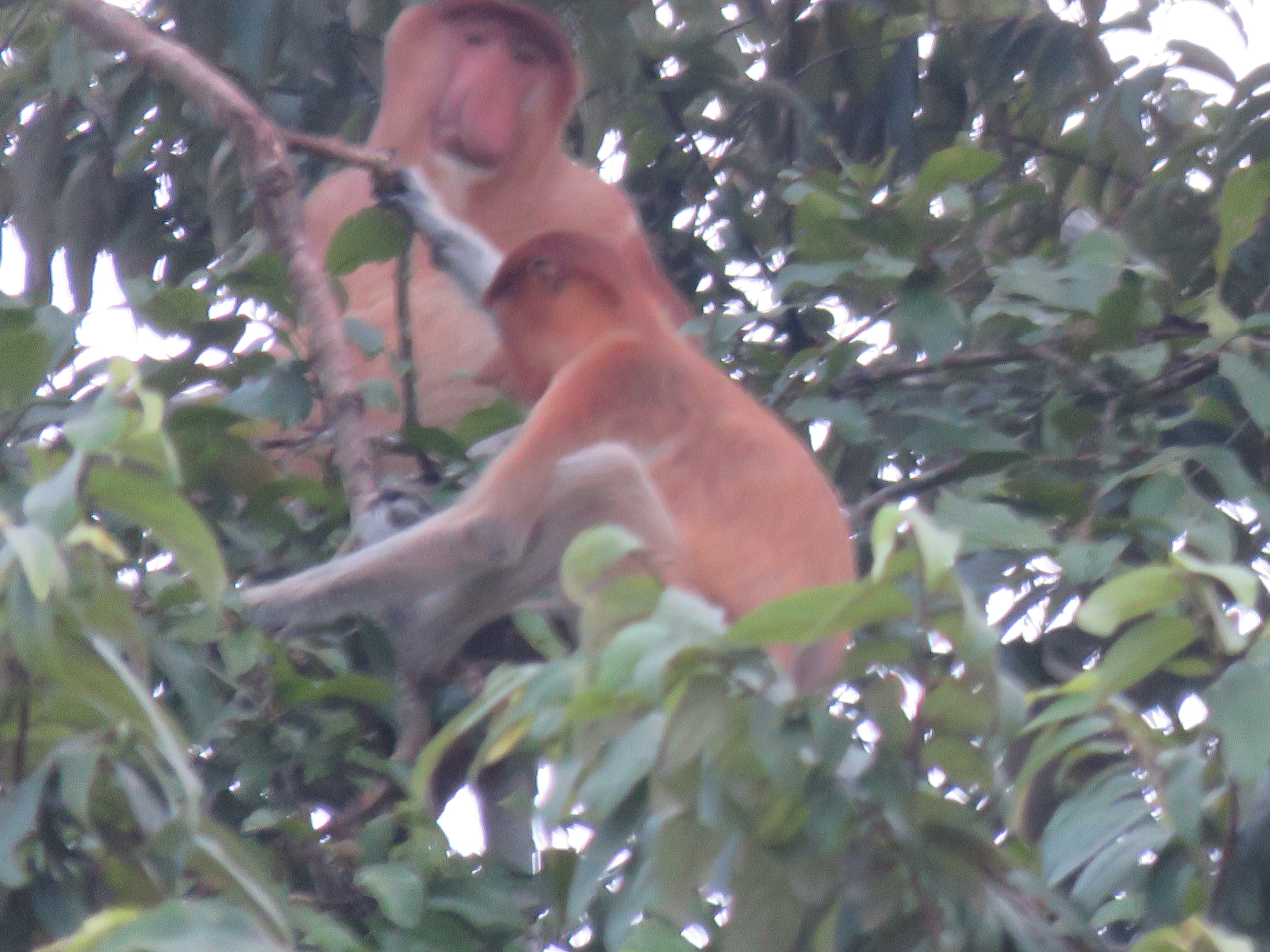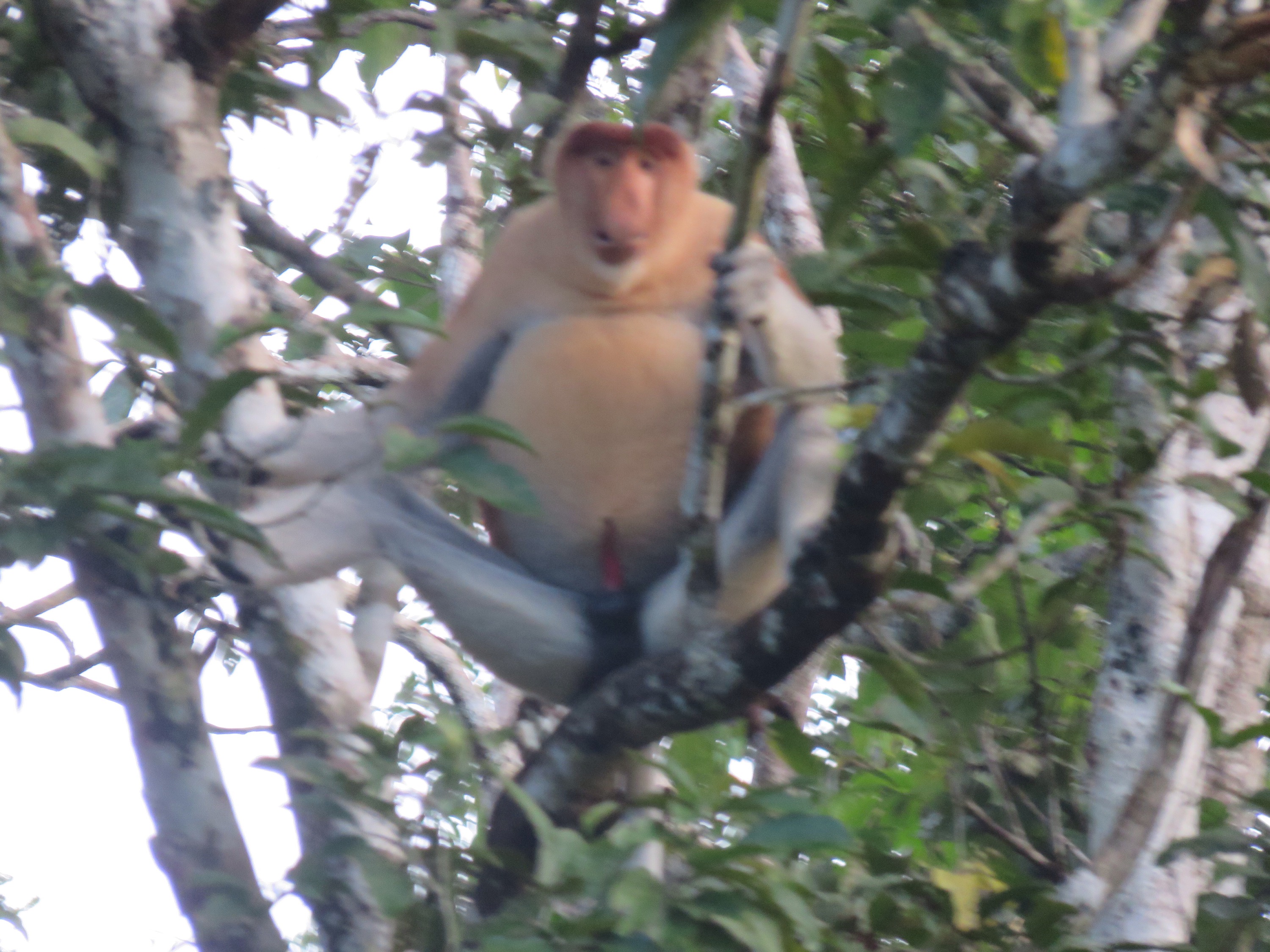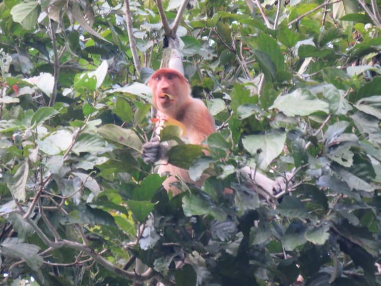 So the entertainment isnt as much here and just one boat tour around the area. The side river we go too is very cool with ancient looking trees and mangroves on the sides that make it feel magical. We see a few probiscous monkeys and kingfisher but not so much. The other group I hear had the luck of a herd of elephants crossing the river with mum and dad protecting the babies as they cant cross well.