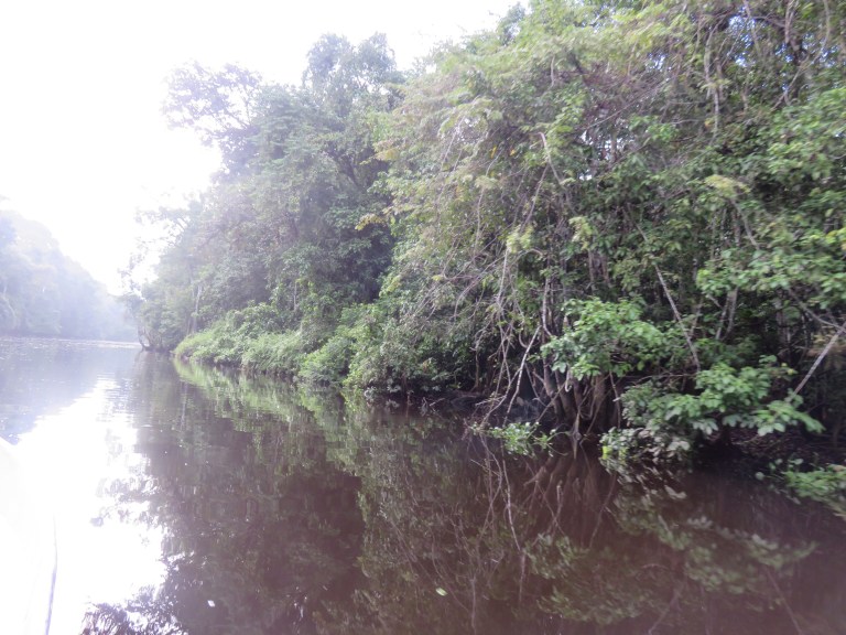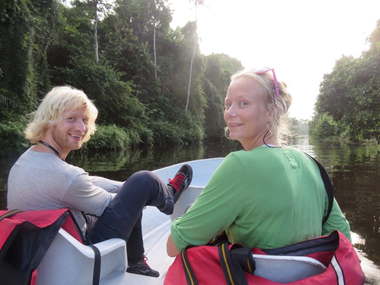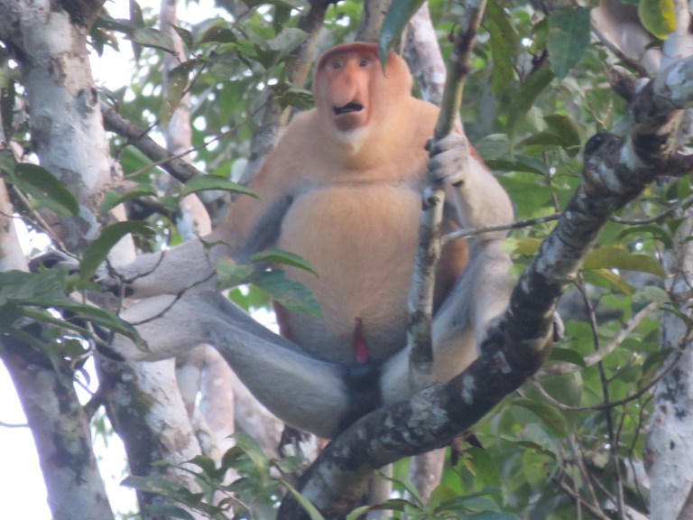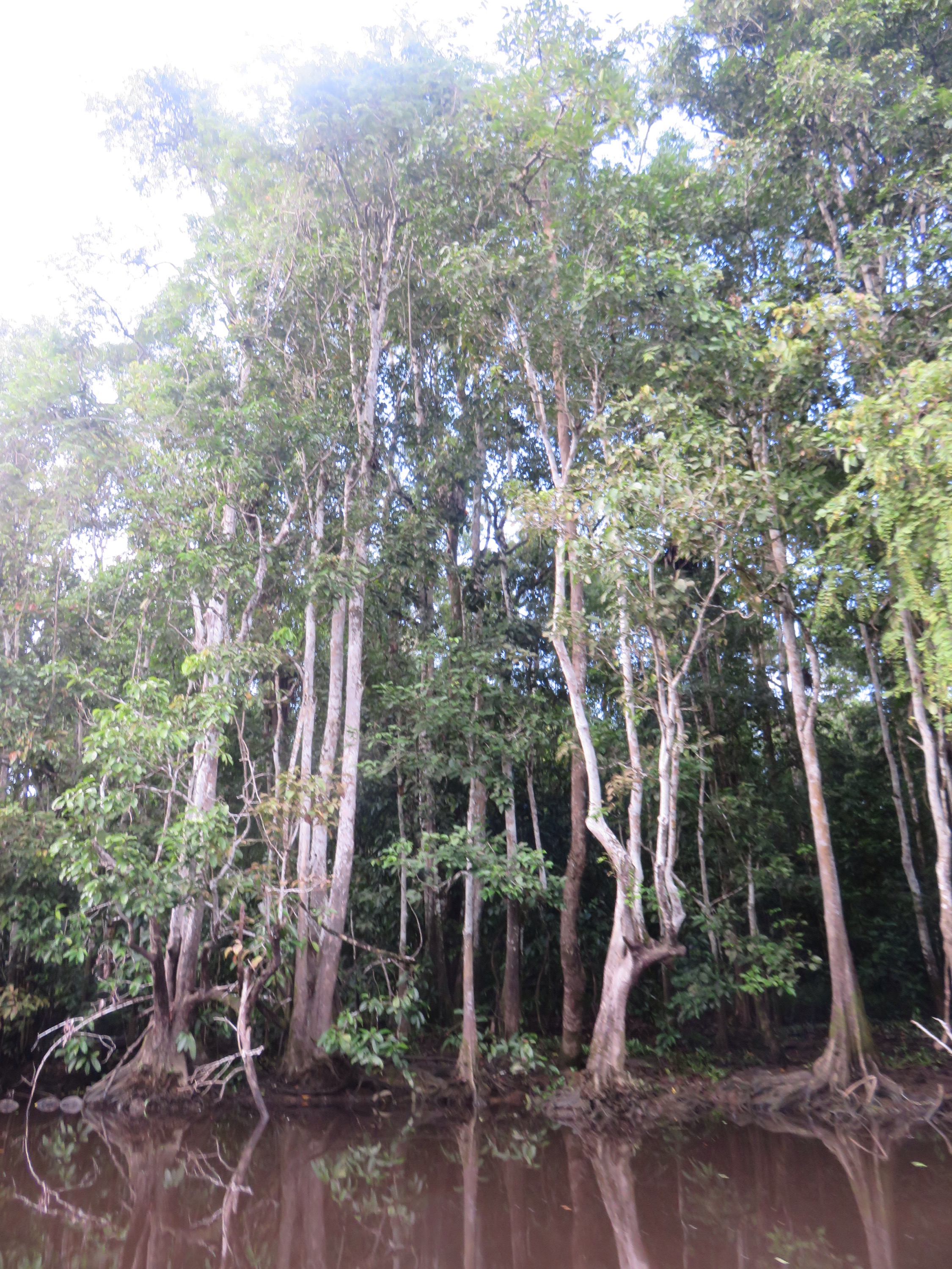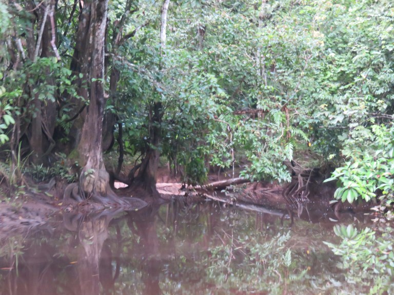 So the entertainment isnt as much here and just one boat tour around the area. The side river we go too is very cool with ancient looking trees and mangroves on the sides that make it feel magical. We see a few probiscous monkeys and kingfisher but not so much. The other group I hear had the luck of a herd of elephants crossing the river with mum and dad protecting the babies as they cant cross well.