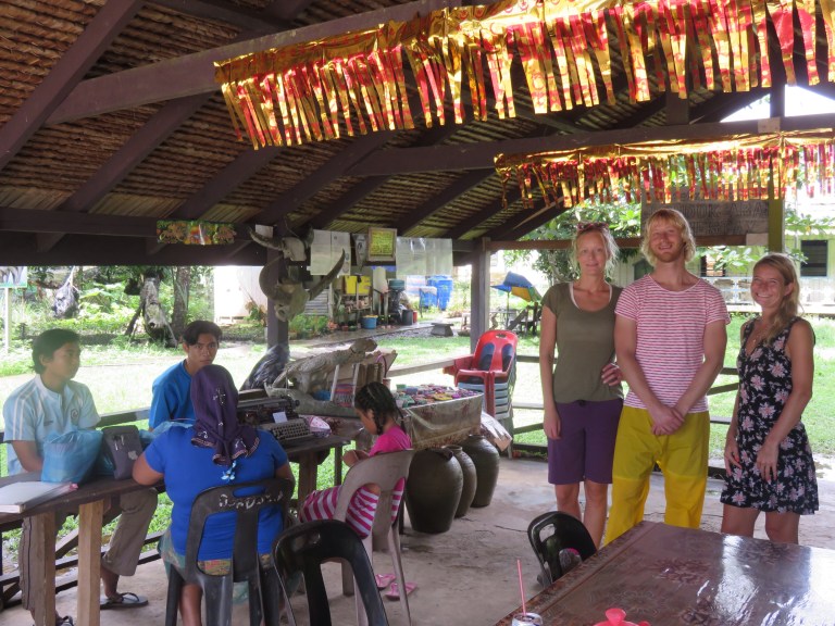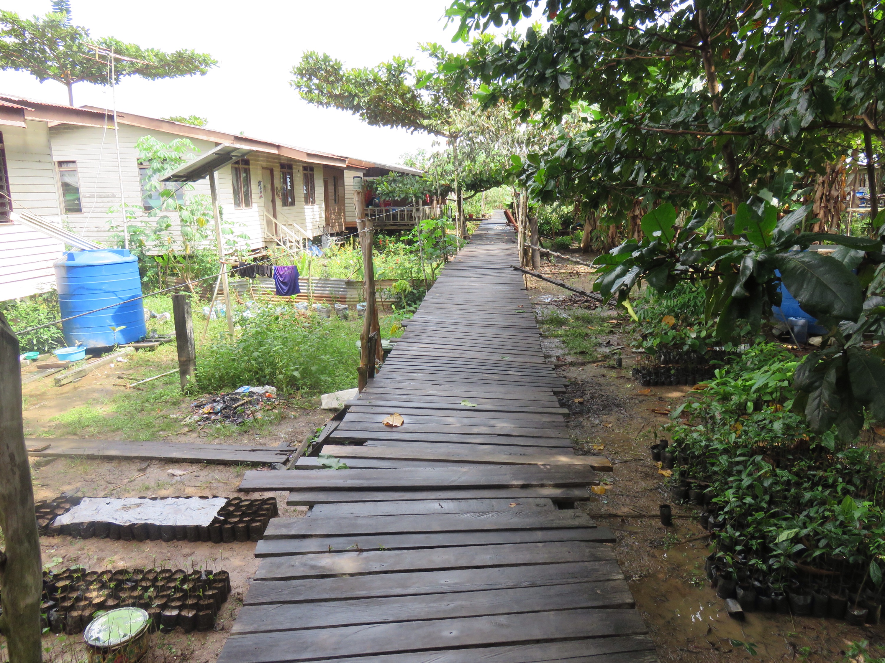 So before we leave abai we go to the village opposite for lunch and to plant our trees. Numbe 4101-3! This is a conservation plan to help preserve the area for both animals and tourists as the types of plants they choose csn be fruiting to bring animals closer to the tiver edge for the boat tour spotting or ones that encourage birds and spreading of good vitamins on the soil as the edges of the river keep getting washed away meaning the village gets smaller. So the locals prepare the food which is nice enough and its good chance to talk to our guide more Shirou who has lots of interesting stuff to talk about and is telling us how the guide certificates work nature vs city guides and how his dream is to go to Dannum Valley where im staying and once he passes his exam can do. So he tells us we walk about the village which has about 200 people and is cute but very basic and all houses are planting trees. Cant imagine they get much money here so them doing the lunch is a good thing as get paid. The main lady shows us purses and other gifts they make from recycling plastic bags and they look so good and am really impressed. So buy one for me and couple of presents too as know it all helps them. So we jump on the little boat back across and there is 30mins until we need to leave so use the time to walk around Abai boardwalk and spot a group of grey leaf monkeys playing and jumping between the trees. Hard tp get a photo but nice to see them.
