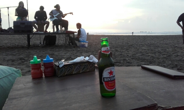 They provide towels for us to swim in the pool as its open until 2am so Rocky and I make the most of it for next couple hours literally turning into prunes in there so long. Swimming up to the edge it looks like it just joins onto the sea and the waves are crashing onto the beachfront, so mesmerizing to just watch. Especially in the Jacuzzi section as the waves views are better and you get a water jet massage! During the day I think this would be great place to go as it has the swim up bar and you can just come in and swim as no cover charge but would need to buy some drinks, so the spend would soon add up. Cheap still vs London for type of place with cocktails about (125-140k) £5-7, but not good when have another 6months to go and large bintang beer is 40k most of the places.