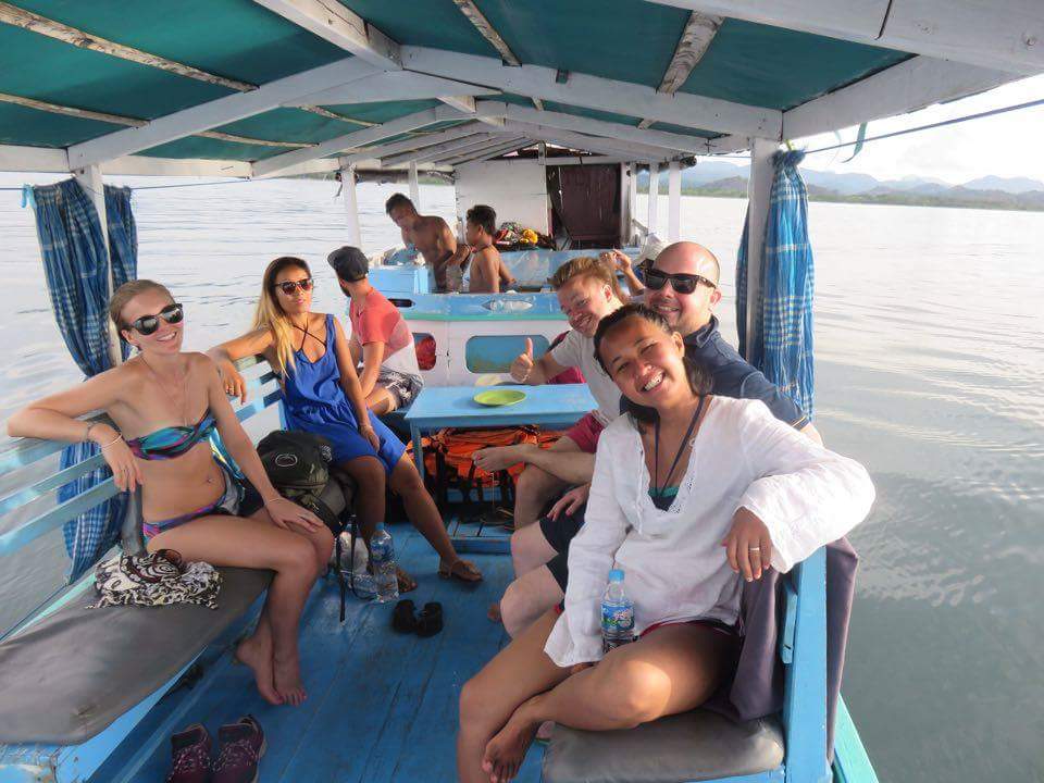 We are due back about 4pm but the boat is still slow as just one engine they say about 5pm instead. However half way there the boat decides to completely die which is always a bit worrying. The older of the 2 boys driving manages to fix it and we are back on track. That is until we notice the steering has gone and the driver chuck half of the wheel which broke into sea and acts like its a usual thing to happen. When it happens again the boy starts to look worried and then a few moments after the engine dies and this time we are actually stuck. There is an Indonesian lady on the boat who can chat to.them a bit even though its a different Indonesian language and they say they are calling a boat to tug us in. I guess this is a good example of you get what you pay for and luckily it’s not sinking as they are known to or catch on fire as another boat nearby is on fire! Holly and I are super pleased when the rescue boat arrives as we notice they are also chucking water out of the boat so maybe there is a leak. Its quite funny having to be towed and think the boys driving are embarrassed but in the end no harm done and just the Flores way.