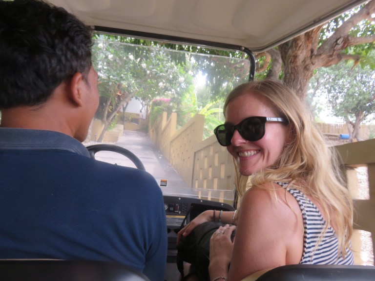 After lunch we arrange for a bar called Hai Bar on mushroom beach to pick us up as that’s what a lot of places do due to the island being awkward to get around unless you have a scooter. So efficient and Batu Karang even golf buggy us up to the top of their resort as its on a huge hill and just jump on a tuk tuk truck after checking out the amazing lap pool and delux rooms they have – its def some place!