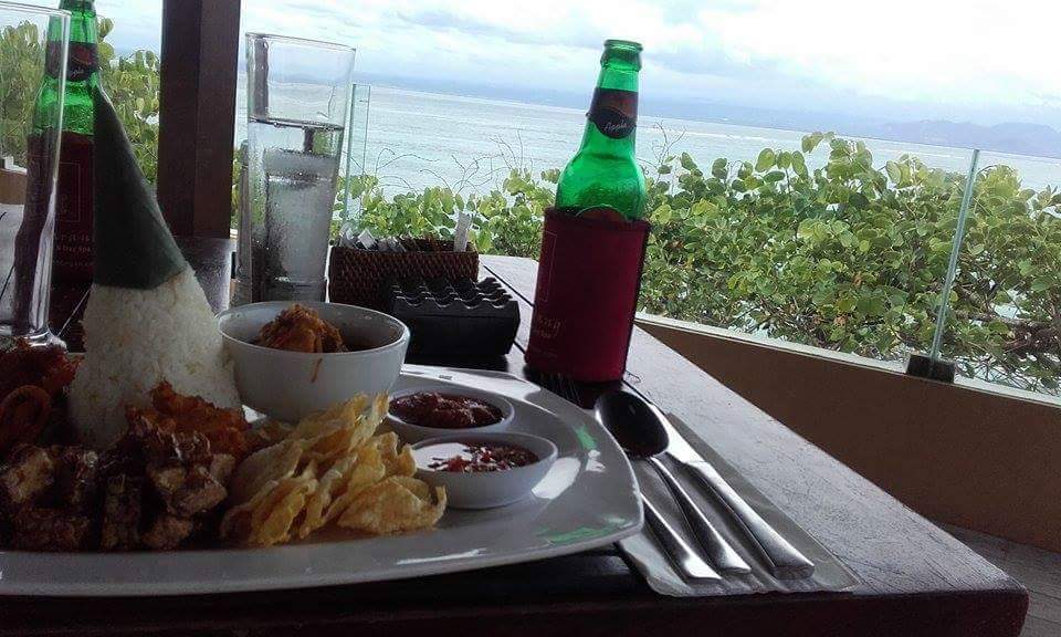 Back early after a bit of a failing snorkelling trip due to the jelly fish we decide to walk up to where Tamara got married in gorgeous resort called Batu Katang and stay for lunch. Shame couldn’t make it as looks like would have been amazing wedding. Great views,tranquil pool and tasty food! We got a Balinese mix taster plate of curry, satay, corn fritters, veg and some weird fish thing. And they have the bali cider as every where else doesn’t seems to have it but its so refreshing and lighter than beer.