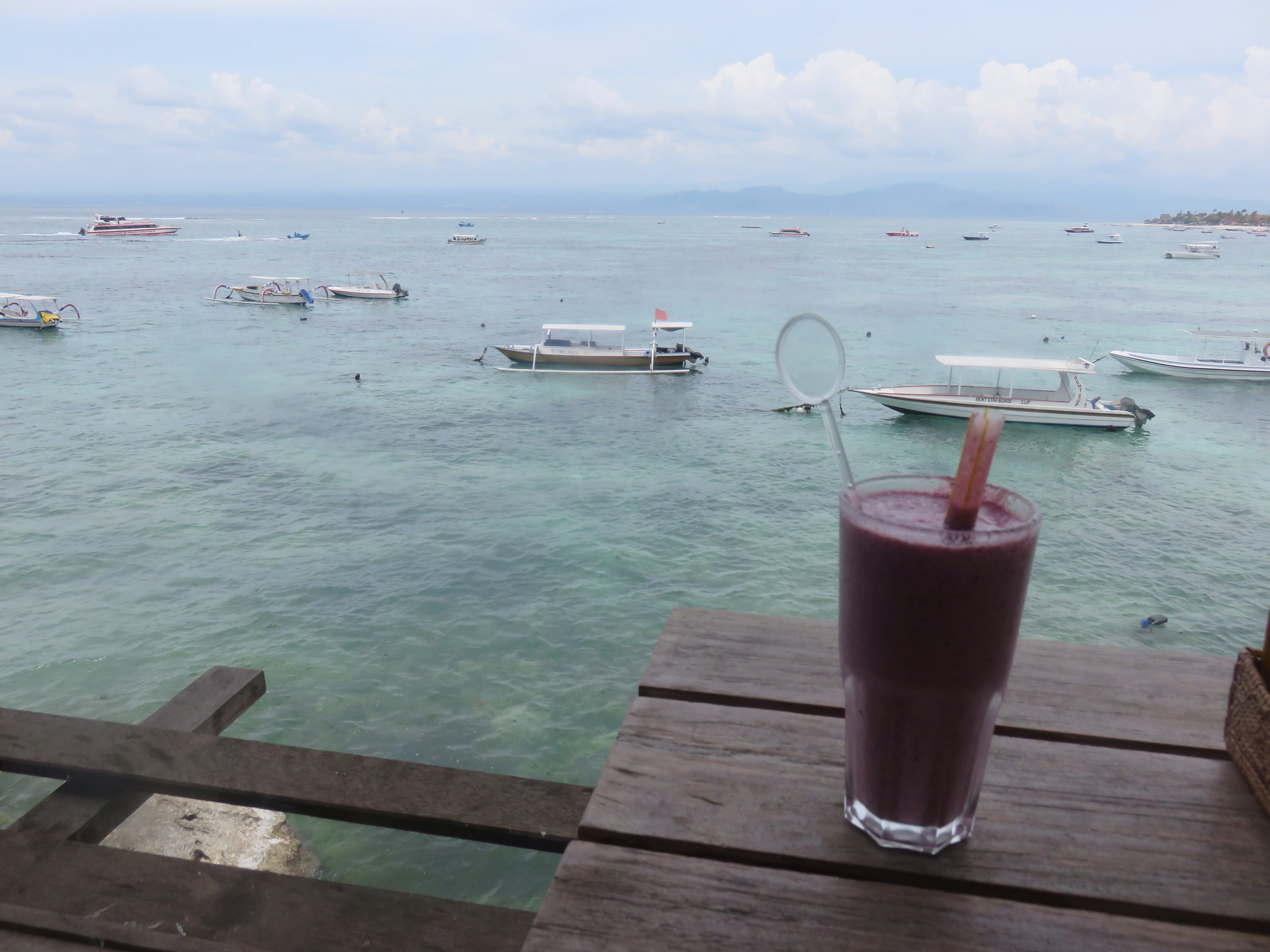 Stopping off first before the hidden beach at the Deck Bar for a health kick of berry smoothie and to see the amazing views as the bar is directy over the sea. For lunch we go to warung warung and both of us have indonesian which is great food and again nice views of the bay while listening to a bit of chilli peppers.