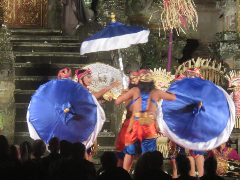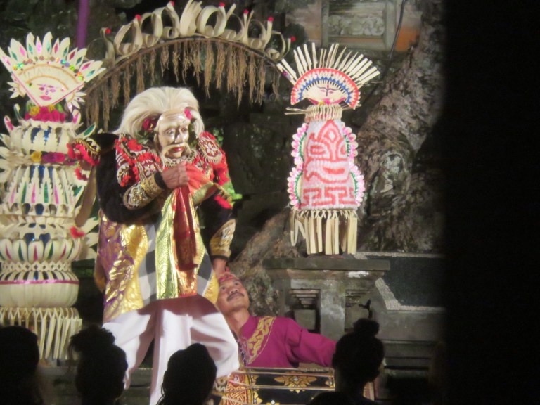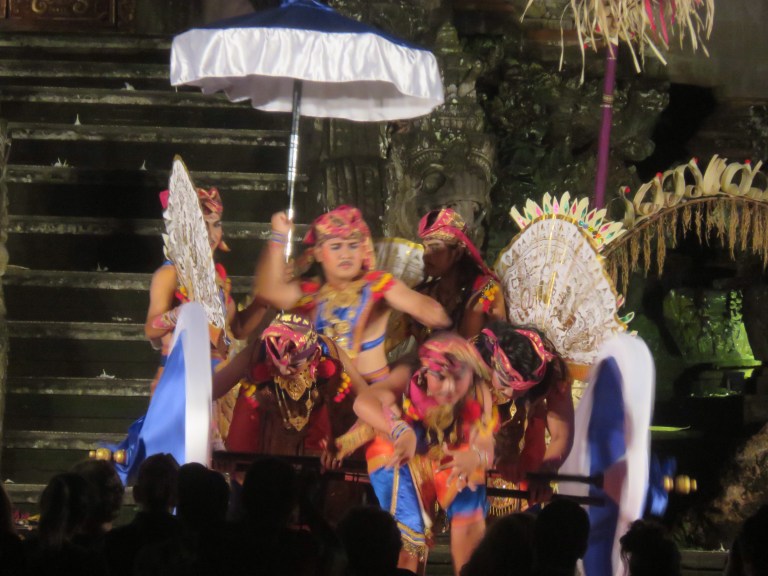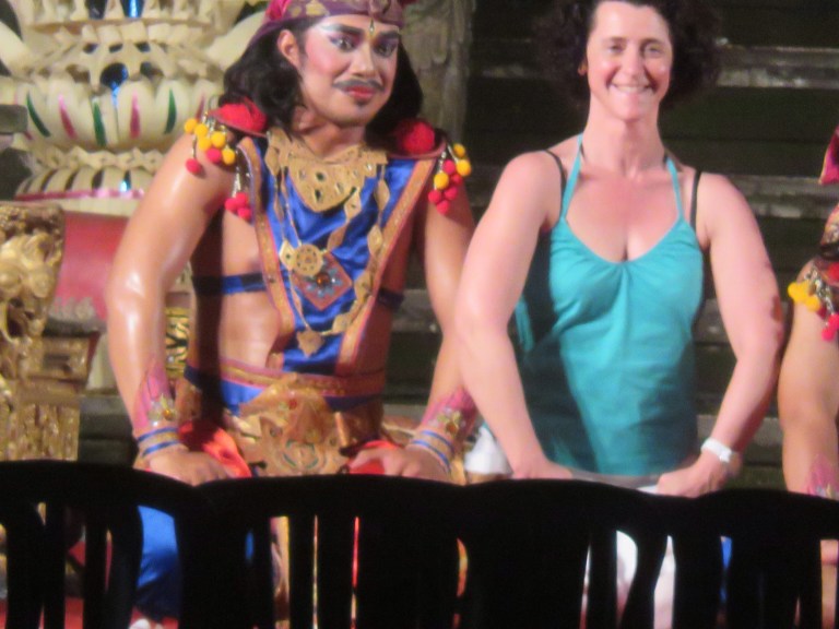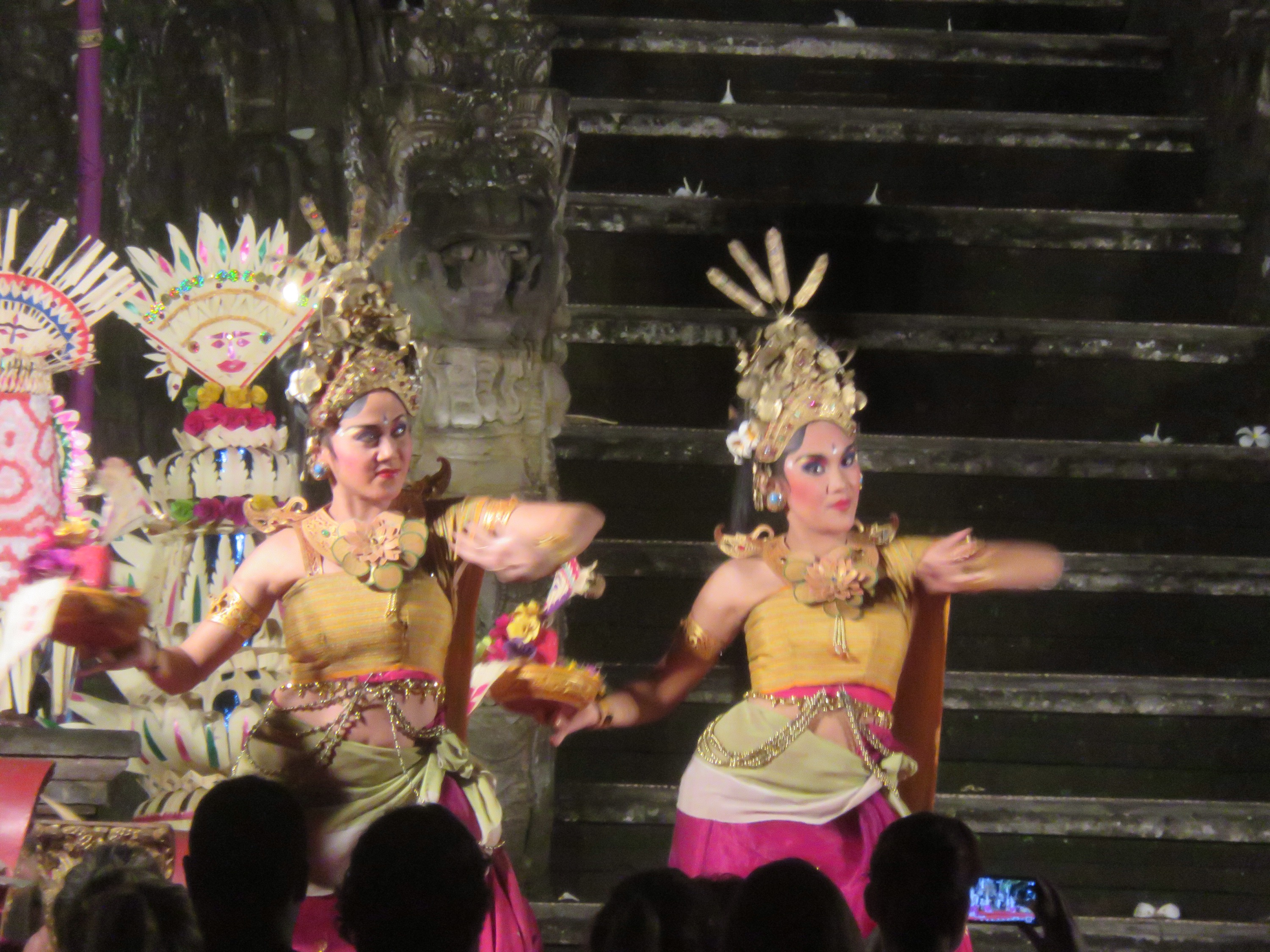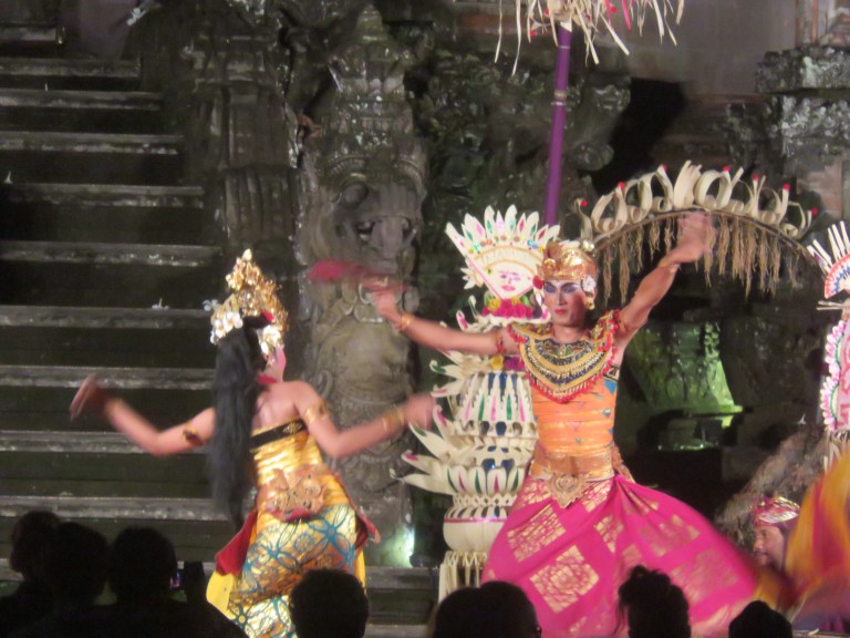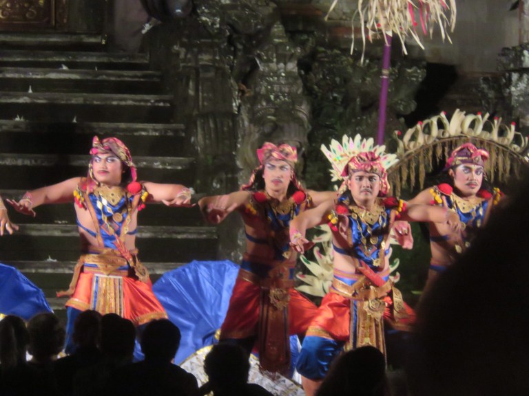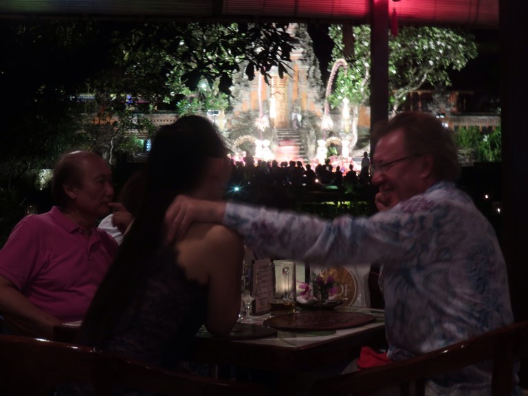 For dinner we have reserved a table at Cafe Lotus as they have the Balinese dancing in the Saraswati Temple and you can watch for free if you sit 3 tables back. The temple looks lovely at night all lit up and the Balinese dancer outfits are amazingly colourful and cool. The dancing doesn’t seem to have much of a storyline and for most of the night is quite repititive, with only a few different things happening right at the end. Overall it acted just as background music not really getting too involved in it and both of more keen to people watch this unusal couple infront of us, a guy of about 65-70 with a much younger lady and her dad, doing far too much PDA we think to get permission to marry. The people watching also helps get over tge really bad food, despite it having good trip advisor reviews as need to send back both meals. Mine because it’s lukewarm and Holly because her Rendang is far too salty, so not the best start.