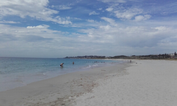 Head along to South Beach for lunch to the Pickled Fig which is nice food and good value for mine as I ordered the starter of loaded potatoe skins and it is was nearly same size as Bex’s main meal but hers being $10 more! We need to be quick back to make the car parking ticket so thankfully we got the bikes, as had planned to walk and would never have made it in time as just had 2mins to go using bikes. So before we leave freo I have to get an icecream as they look amazing and ebd up with one of the biggest ever had before with a scoop of yogurt abd scoop lemon. Super nice for our car journey to Leighton Beach our final stop and another pure white sandy beach. The weather isn’t as good today, but still hot enough to swim and lay out for a bit. Overall it’s is a good way to end the Freo trip, but might try and go back on a weekend day as also saw there were sunset markets.