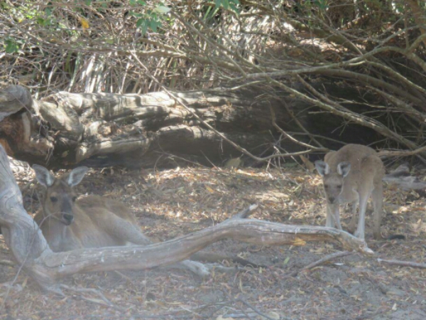 After the cave we visit the koala viewing area, which is really nice set-up with 10 cute koalas who live there as WA isn’t their nstural habitat. They are larger than expected and so still you would think they weren’t real just hugging the trees with water pumps spraying around them cooling them down. Chilled way of life lol and they apparently can store their food for 5 days. It’s super hot walking about so we head to Yanchep Inn to cool down and have a beer before finding our spot for the bbq. We are really lucky as we walk around the lake we see quite a few kangaroos chilling in the bushes. One with a baby joey so cute! They seem quite inquisitive and we chuck them a sausage and left over burger. The area is full of birds too with parrots, ducks and cockatoo sitting about so very cool.