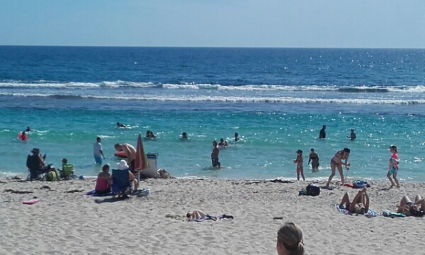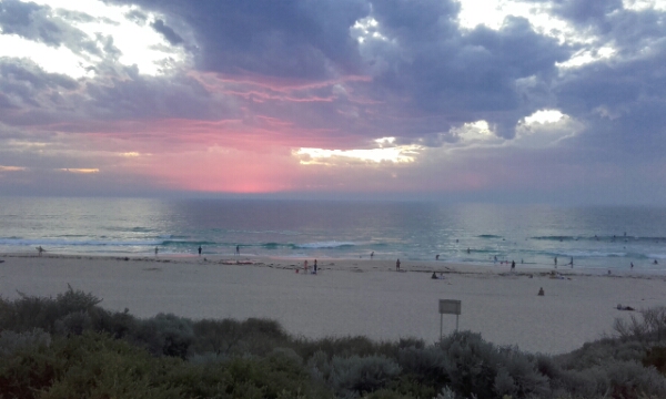 After a lush barbie we drive to the Yanchep Lagoon an amazing white beach with super blue water, which is kept clear by a wall of rocks where the waves crash in. Whilst it looks really calm the currents are still very strong and its really hard to swim out to them – resistance swimming – plus laughing too much and keep swallowing the water lol. We stay there until about 6ish before making the drive back to meet Tamara and crew at Kalais beach to get the end of the sunset, which is full of colours tonight.