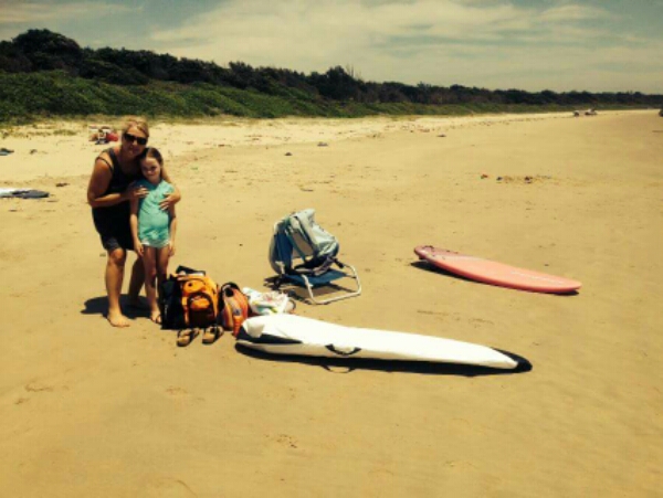 In the morning it’s a sunny day, so head to the beach as Gemma wants to show me her surfing skills and Neolie wants to show me her lovely beach. We go via one of Darcys friends who was bitten on the face by a rottweiller and has 54 stitches, to give a present and see how he is. He is very lucky the injuries were not more serious.