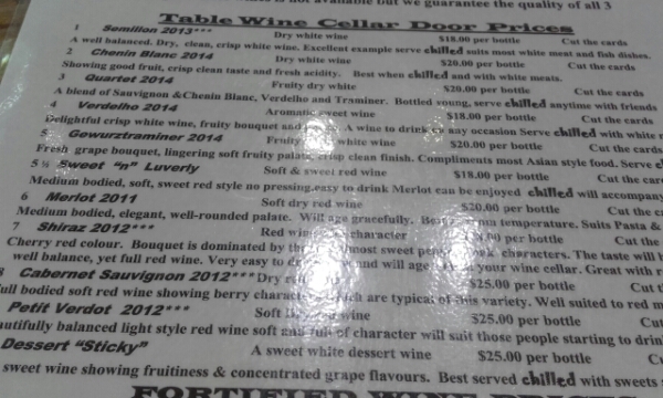 Intended to be the last one, but wasn’t quite as we stop at Kevin Sobels that I really like as has a more family run atmosphere about it and the lady is really helpful and informative about the process for making the wine mentioning that a company like yellow tail who mass produce will take any leftover bad grapes to meet demands rather than here only use good ones . I end up buying another wine as never seen it before and its nice – a Quartet of Sauvignon, Verdello, Chenin Blanc, GewurtzTraminer and think overall this is my favourite one. It also seems to have good rwviews online, so one I would recommend doing a tasting with.