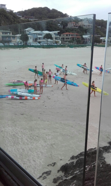 By the time I walk back towards the surf club the beach is starting to get really busy with a few life guard training groups. I grab a cider in the club and sit out on the balcony looking out to the beach and sea, which is pretty cool. It’s interesting to watch the training all in different colour fluorescent tops, as they are so quick on the boards they use kneeling on them or some laying flat on their belly and paddling out really far. They all look very fit and do it for about 2 hours running into the sea, paddling out then back onto the beach each time racing each other. It’s such a better way of life being so active than back home.