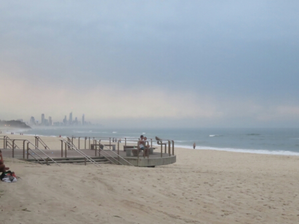 So the first time I have used the buses here in Gold Coast and all seems easy enough and not too expensive at about $11 (£6) for a return ticket to Curimbin beach, which is about 25 minutes away on the 700. The weather is another cloudy day, but the beach still looks fab with white sand that goes on for ages as it’s a wide and long beach like many of the gold coast beaches. The sand actually squeaks too when you walk on it. The top of the beach has the Vikings Surf Club and a cool big rock called Elephant Lookout, which I head up to get some decent views of the beach and sea. Having been told that it is a good spot for surfing, I can see why as I get to an end where there are a lot of rocks. Since it’s a bit of a bay it is quite easy to get out to the point where the waves break and it is called Curimbin Ally. The waves today look quite a decent size and it’s relaxing to just watch the surfers out there with the cool backdrop of Surfers Paradise high rise skyline in the distance. It’s good at this point as it isn’t too crowded and so safer with even a lot of younger kid’s out there who are all very good and can notice that they have likely grown up with a board. On a nicer day or weekend, it might be a different story!