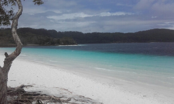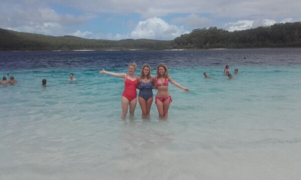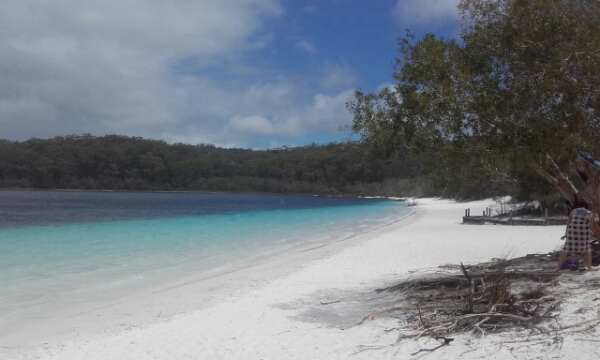 Lake McKenzie is the main thing for the day and is so beautiful with amazing white sands and the clearest water. The sun even manages to come out for a bit, as it’s been mostly a rainy day, but even with the clouds it’s still gorgeous. Chris our guide does say it’s the first time he has seen it with waves as usually totally still. Water super warm it’s best to stay in the water as too cold outside otherwise. The lake is famous for its sand and apparently you can wash your hair with it and brush your teeth, which a few in the group try. We stay there for couple hours and the first chance to meet and mingle with the rest of the group, although everyone still keeping to their cars more at this stage.