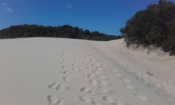 We need to leave camp on time to get to Lake Wabby and go via the Happy Valleys resort to get more ice and supplies. It’s straight along the beach to get there and then it’s a 45minute walk through the forest to get to the lake. It’s a super tough walk as so hot and on sand plus feeling tired from the camp drinks the night before, but totally worth it when get there. The sand dunes that surround it are so big and hide it, so at first when you get to them, you could think that the lake has dried up and been taken by them. In the lake the water is so refreshing after the walk and is full of the fish that eat the deadskin and so spend about an hour with the fish pecking at my skin. I thought it might tickle but you can’t feel anything really apart from the odd larger one that gives you a good bite. As the lake is so calm it’s also good to swim in and can do a good few lengths trying to build up my paddling strength for my last surfing in agnes. I bump into Orla and Ruby the young girls from Noosa as we head back. The walk back is even harder than arriving as have to walk up the sand dunes, so you just sink with every step and easiest way is to walk in the footprints already about.