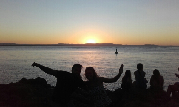 After the lesson the rest of the day is chilling at the hostel with Craig until we head out for the sunset tour again. A nice group all different apart from me and Craig, with a guy called Henry I met in Noosa, a nice Scottish group and also bump into Nayf from Noosa on the rocks which is cool. The sunset is pretty beautiful tonight, but we end up staying there too long as they need to do two trips to hostel as too many people and end up getting bitten alive and all trying to run away from them it’s so bad. I end up with about 30bites on each leg plus more on the body and so spend rest of night scratching, which is not ideal when there is a 12 hour bus ride ahead. After the tour I just kill time at the hostel having few drinks to help me sleep. Canadian Kayley arrives too at the hostel who I met in Rainbow Beach ob tge dunes tour so it’s fun to catch up with her before I leave.