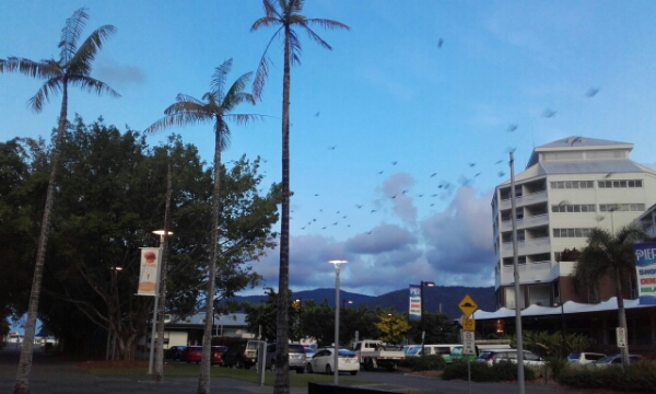 So with the girls Ruby, Orla and Ashleigh spend the first day Thursday grabbing lunch at the mall Cairns Central and heading to the Lagoon as the sea is full of jellyfish and the beach is pretty non existent. At least the lagoon is cold and refreshing unlike Airlie, but not as pretty and tropical looking. Cairns is very much a reunion place and end up seeing Amsterdam Frank here, Byron Bay Quincy and the 3 Magnetic Island girls catching up on things while soaking up the rays and cooling off as much as can in the water. On the way back to the hostel pass the Bat tree, as Cairns is full of bats and every evening there are hundreds of them flying about. During the day they just hang upside down in the trees looking really creepy.