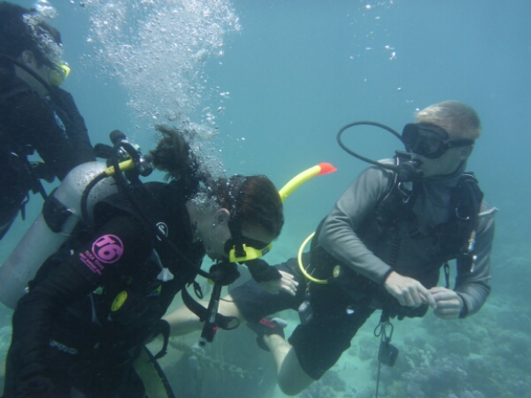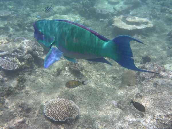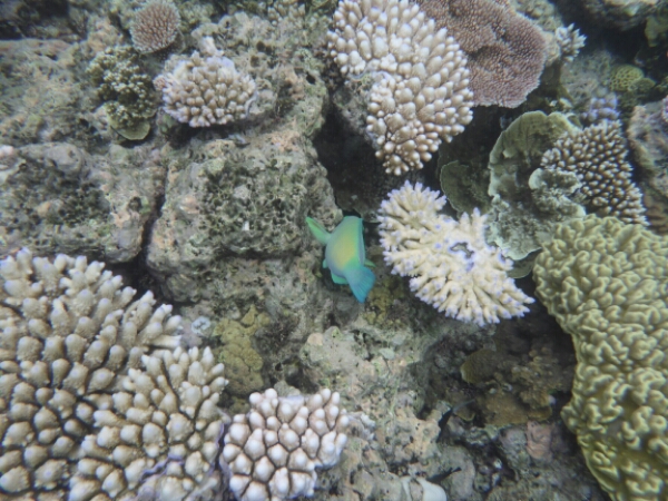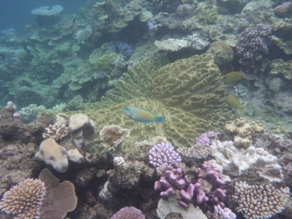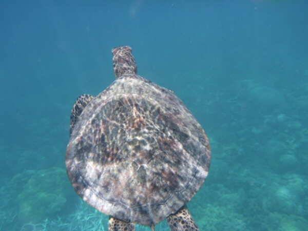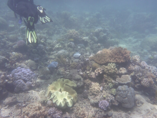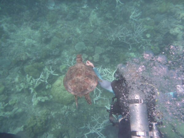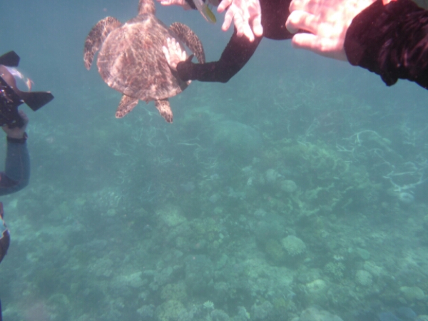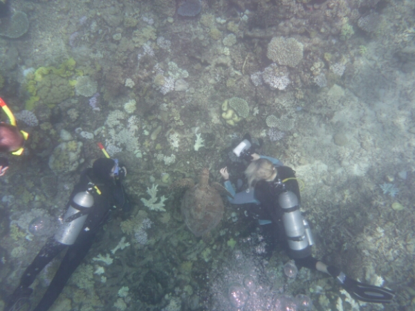 It takes about an hour and half to get to the first dive site of HASTINGS REEF – the FishBowl which is beautiful and seeing the coral underwater is more breathtaking than I expected. Matt does everything for us, losing up our gear and all we need to worry about is the 3 basic skills of breathing without a regulator, finding the regulator and clearing your mask. It all goes well and seem to slip into the dive quite easily, encouraging me to actually pay more to do one more de in the afternoon. For the first dive they don’t allow any underwater cameras due to needing to do the skills (which I hired for $45 -20 GBP), but get a chance to get some amazing pics after as have an hour to snorkel after the dive where I see a reef shark and a turtle, plus amazing fish of all colours.