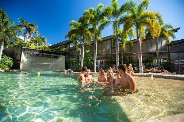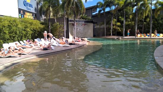 So after having the sky dive cancelled already once on Thursday, the rescheduled one is at 7am Saturday so another early start and never ideal after a Friday night at Gillingans. But looking at the weather I’m not expecting great things, as looks very wet so it’s no surprise as soon as I get to the bus the guy informs us that it is again cancelled, which is frustrating as it is a waste of a day. It does mean can catch-up on sleep again and head up to reschedule it for Sunday, a last chance option and luckily there is a 10am bus option meaning if it is cancelled again then at least I’m not up too early and can enjoy my Saturday night more. So the rest of the day is just spent visiting a few of the million of travel agents about in Cairns getting a few quotes for New Zealand and chilling around town. I bump into Luke, who was in my first dorm room and after the travel shop visits end up hanging out with him mostly around the pool bar area, with a group of Irish and Essex lads he knows from Sydney who have just arrived and are all good fun called Arron, Karl, Joe, Charlie and Josh. So spending most of the day around the pool area, out of the little sun there is as it is way too humid to be out in it and are forced to stay in the shade. That is why I much prefer the climate in Perth, as you can actually enjoy the sunshine and warm weather rather than spend it in hiding haha. After staying around there for a few hours, the boys leave to grab some drinks to have pre-drinks in the room, but leaving it too late and missing the cut off you’re allowed to bring drink in we all have to have the drinks at Luke’s hostel across the road sitting out on his steps. As Saturday night is aways party night at Gillies, we head there not too late about 10.30pm before the bouncers get too strict on entry, however as Joe comes a bit after us he doesn’t end up getting in anyway. The night is pretty fun and catch-up with Rrory too, having a good dance in the club and chat to people out in the live music area. I end up bumping into 1770 Nayf and it’s his birthday and not sure I have ever seen anyone quite so drunk as him, with his birthday bandana on and sore ribs so walking funny I almost mistook him for one of the drunken locals that hang about haha, but luckily I stop and manage to help him get back to his hostel and enter the code needed, which is the same hostel Luke is staying in.