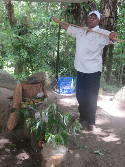 The drive up to the first stop MOSSMAN GORGE isn’t too far and we do a mini stop at a look out point, which is a nice view. At the gorge we pick up our pre ordered breakfast and get an into to the park, with an aboriginal “Welcome to Country” smoke ceremony where we all have to walk or dance around the fire to fan it as this is meant to also cleanse us of any evil spirits. The traditional owners are Kuku Yalanji people We are shown some of the plants and tools the indigenous people used to make from the rainforest and use, such as a wooden board that helped carry babies, food or could be a shield. We are shown how they made body paints all different colours, which is very impressive and we get a chance to do some war marks on our face and arms. He also tells us a few aboriginal sayings and words, all a bit tricky to say but interesting words.