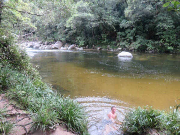 After the welcome ceremony, everyone is super hot and desperate to jump into the cold water of the gorge and it feels so refreshing when we do. The gorge is carved out by the cold mountain waters of the Mossman River, which has rapids through large granite boulders, bordered by super green rainforest. x. There’s the opportunity for you to enjoy a refreshing swim in the cascading waters.has a mini rapid running down it and we all try to get to the start, but heading in the middle the current is far too strong and you feel more like you are swimming backwards! Karl sussed out a way to get up pretty quickly, so he shows us the route to go which is along the rocks on the far left to pull yourself along to a point where you can climb and jump far enough into the water to be able to able to swim over the rapid to a rock. From here you can then swim up to the top to either climb the rocks and go to a small pool behind the falls or swim across to the start where you basically get fired across super fast and is really fun! We do this a few times until we have to leave and it actually starts getting a bit cold. We also start getting a monsoon shower and it feels very tropical with the water being so ht, reminding me of being in a rainforest shower in centre parks or somewhere like that. We manage to get to the bus stop semi dry, but for the rest of the day remains to be a pretty damp day never fully managing to dry out. The real experience of being in a rainforest when it rains!