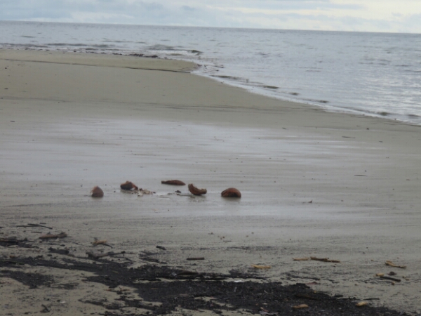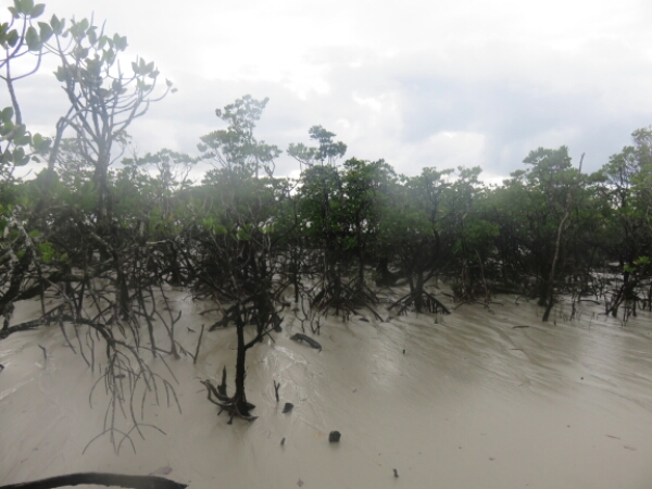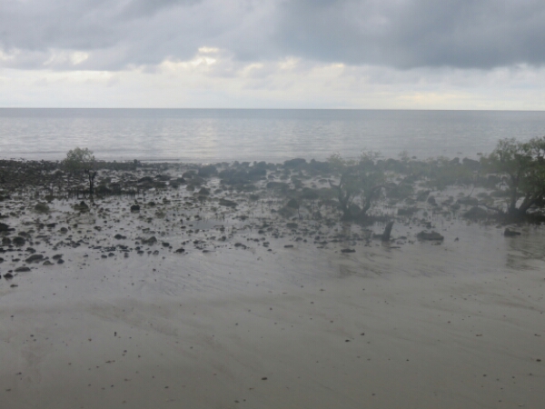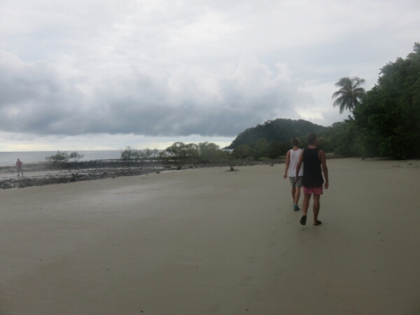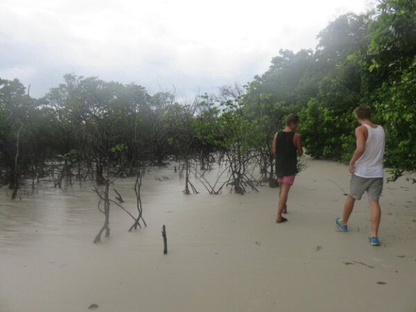 The walk along the beach is pretty stunning, but glad I’m with the swedish guys as also a bit scary as there are signs everywhere saying crocs and not to get too close to the water. It is the most unusual each I have seen as it is full of mangrove trees and the forest just overlaps ono it. We head towards the lookout, which is about a 20min walk along the beach passing lots of coconut trees as we go too. The sand is so soft and in spots you sink if you don’t move quick enough.