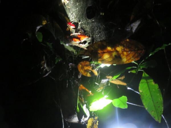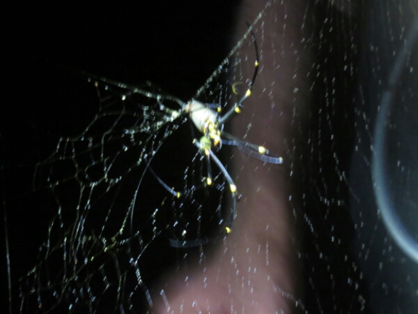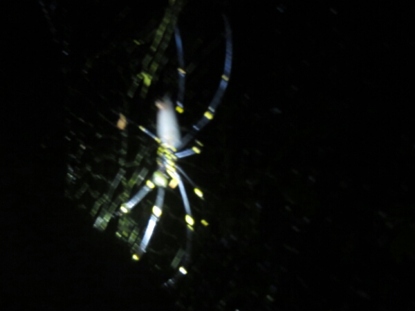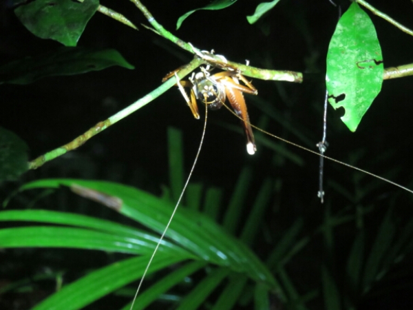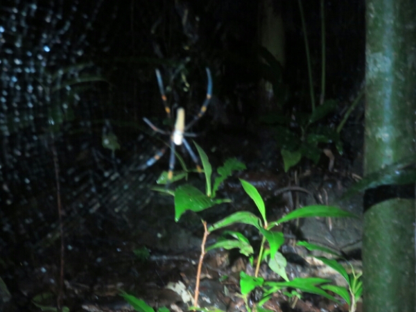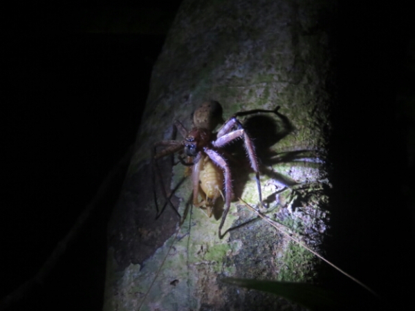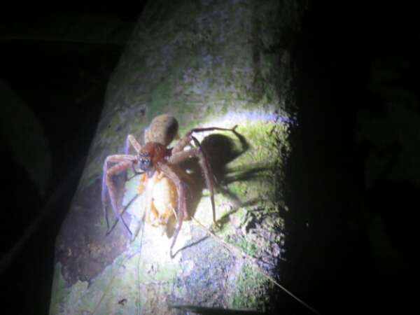 The most interesting spot from the tour is where we see a Huntsman spider feeding off a cricket, as it looks very gruesome with the antennaes still moving and the spider totally smothering it. The walk is cool going through the forest at night, but I think due to the rain we don’t see many things out.