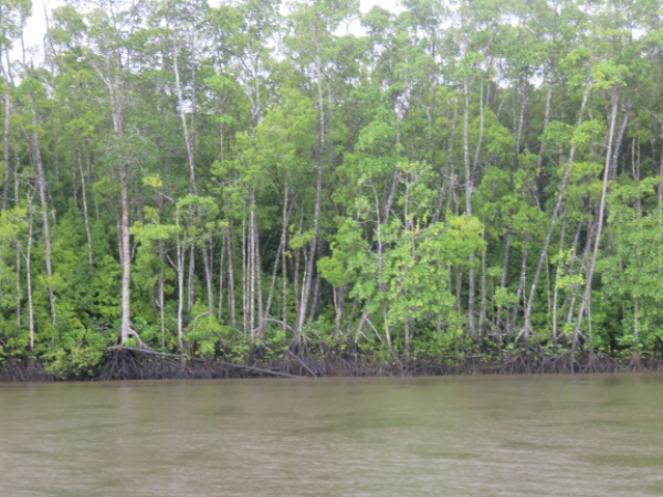 The first croc is a small little guy eating a toad and we all manage to get to see him, as he is fairly out in the open. The second croc is a bigger adult croc and is guarding eggs, so she is really hidden within the mangroves and I don’t ever quite manage to see it despite the guides best efforts to point him out. The guide does say because of the rain they are more hidden, but it’s nice to see at least one.