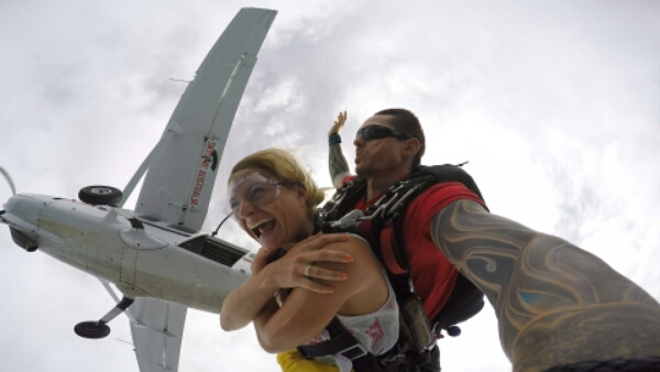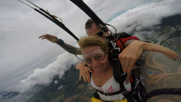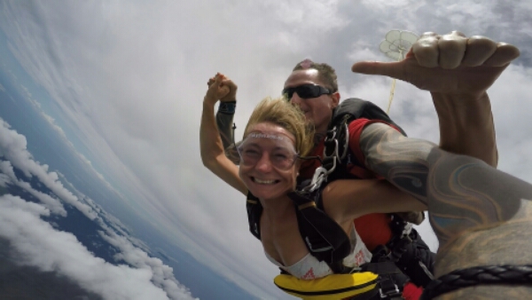 As we eventually get closer to the ground I need to hold my knees up for the landing, so that he can do all the work and we have a really soft landing, which is great! All a bit thirsty from the dive and tongue tied, I don’t have much to say when he wants t do the final interview haha, so am a lady with few words. But I am totally loving the experience and proud of myself for doing it. So head back to the bus and to the water, as feel a little light headed and unsteady and it’s lovely having the air con blasting on board that makes me feel a little better.