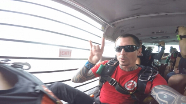 So today is D-Day for the skydive and it’s scheduled for 12.30pm, but wake to find a text message saying all dives are pushed back of 3 hours due to weather. Not a great start! So I give them a ring to explain that it has already been cancelled 4 times and to see if there are ay options to be prioritised or moved up if there any cancellations and say will let me know. So it’s a nice surprise when I get a call at 1pm to see if I can go in the next 15mins for the 1.30pm skydive and luckily I am just around the corner, so that is no problem. When I arrive everyone has already started the briefing and so jump into watch the video telling you about what to do with the jump, which all seems pretty straight forward. Straight after that the instructors come out and I have a pretty cool dude called Brant, who says has been skydiving since 2005 so seems to know his stuff and is a pretty laid back guy, covered in cool tattoos. He puts the gear on me and runs through how it will all work t put any worries at ease.