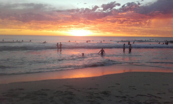 So enjoying the sea and nicer aves, we stay there until the sunset and Michelle coming down to meet us. Even until late at the ight the beach is super busy with everyone haing the same idea and has a great atmosphere – a very summer’s night feeling. Great for people watching, especially watching the life guard training going on similar to what I saw in Currumbin in the gld coast still amazing me at just how fast thy go out and how easily they glide through the crashing waves. Definately a good thing to do when your growing up and to build your fitness up when your really young!