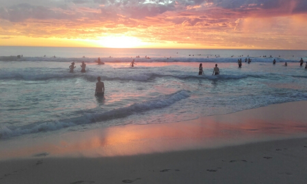 After an hour in the water, we head to pick up Tamara from the station, as she left work early to squeeze in afterwork swim since it is the hottest day in Perth for ages. Heading this time to a part further along Trigg beach, had we known, the waves here would have been much better for learning on as much smaller and break more evenly rather than all at once on you. However at this time of day, everyone has the same idea and it is pretty crowded with surfers so really need to go at a time of day when less people are about as otherwise it just becomes a bit dangerous with boards flying about everywhere.