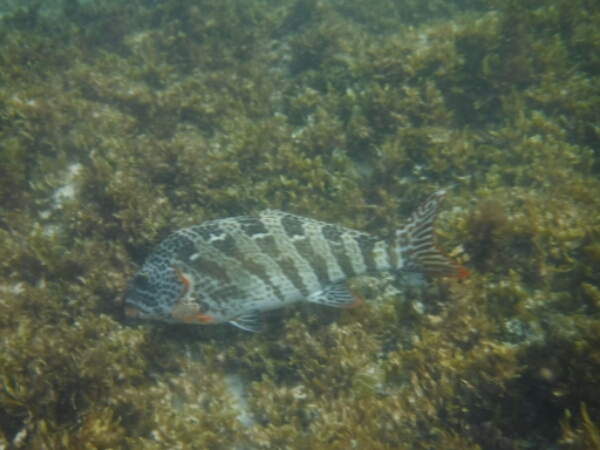 The snorkelling is slightly better today, as visibility clearer and water calmer, so I end up swimming out further until the end of the shallow reef and you hit a big drop that suddenly looks darker blue and a bit scarier so I don’t venture out too far. Always the shark thing at the back of my mind, even if there haven’t been any sightings for a while (or none that I know about anyway!).