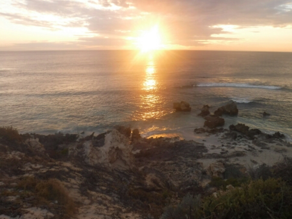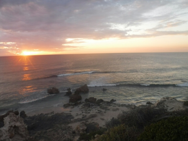 So leaving around 1pm, I cycle up to Mettams pool and explore a few of the beaches just past it as enjoying the bike ride in the sun. Always really tranqil and not busy, it is easy to spend the next 4 hours laying at the beach, reading the 4 hour work week book and sending messages to folk back home. The mix of people at the beach include a few french, group of guys and a french lady who end up chatting to about the fish she saw snorkelling, a few families, a pregnant lady and an old couple who saw previous day and so it must be their local thing to do.