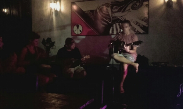 The music is pretty good playing well known songs and the girl who works at the hostel Katie is helping out playing a drum and shaker, which is quite amusing going along with the guy and his guitar.